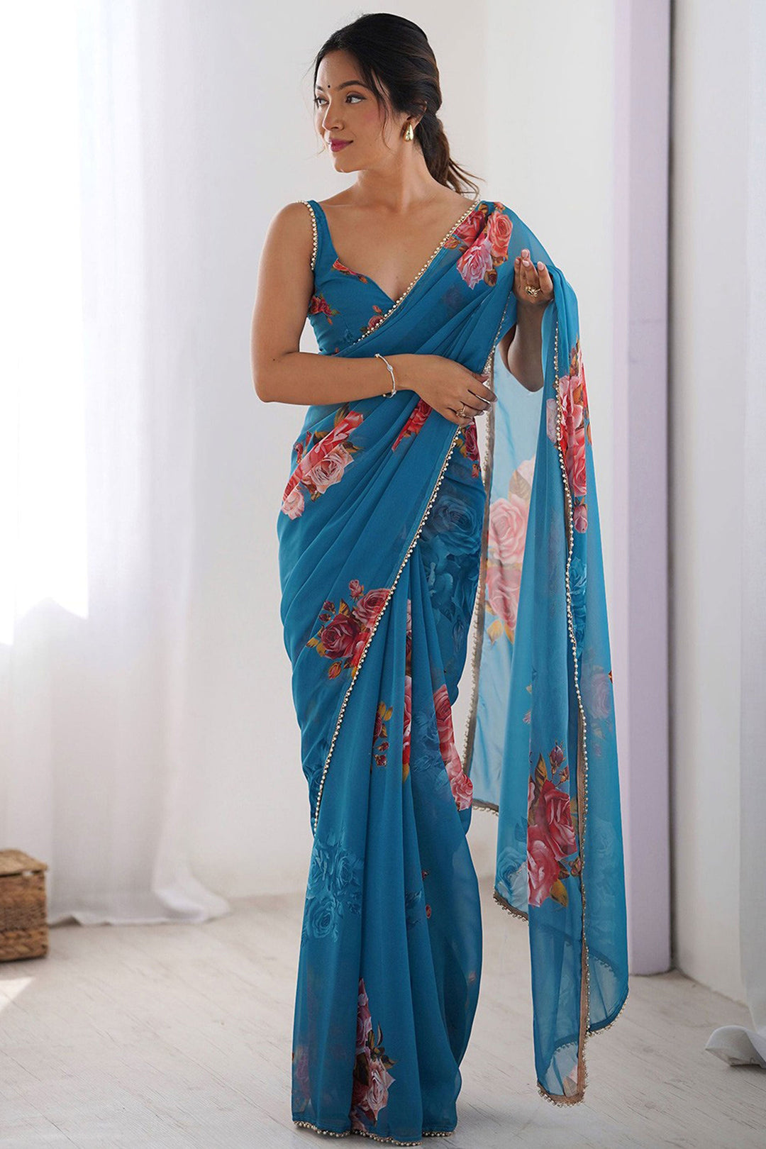 Amazing Sea Green Color Georgette Fabric Readymade Kurti