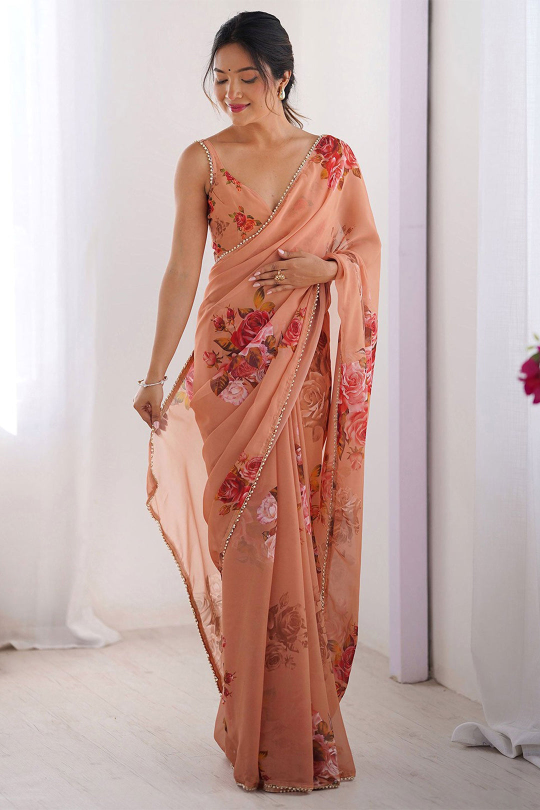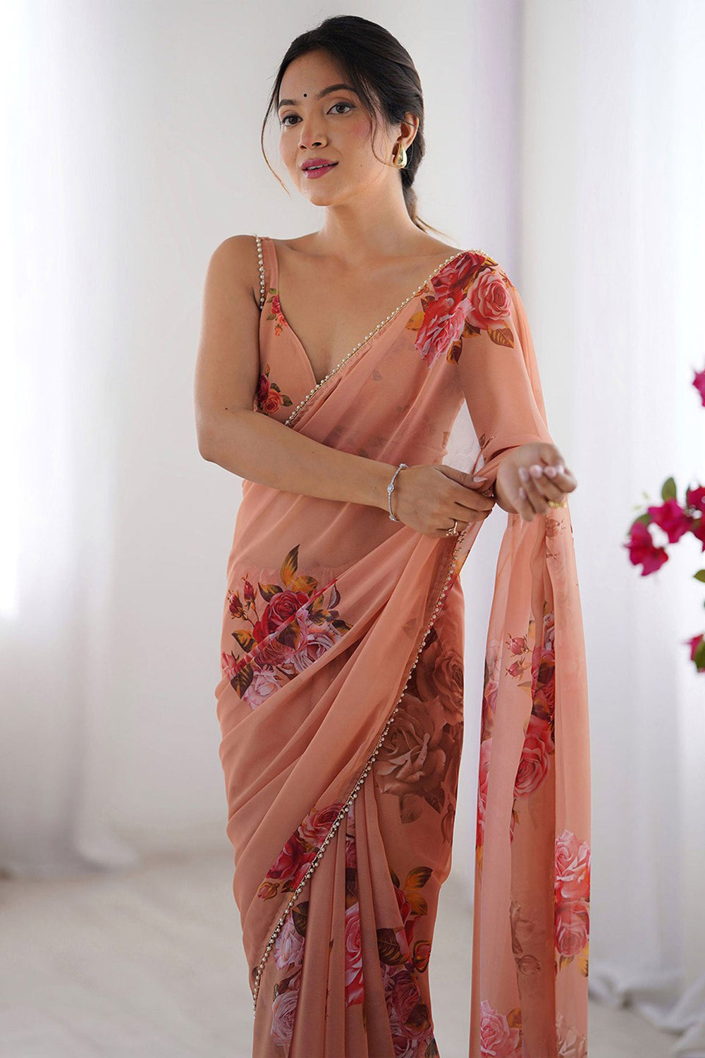 Merlot Georgette Fabric Pink Color Floral Printed Readymade Gown