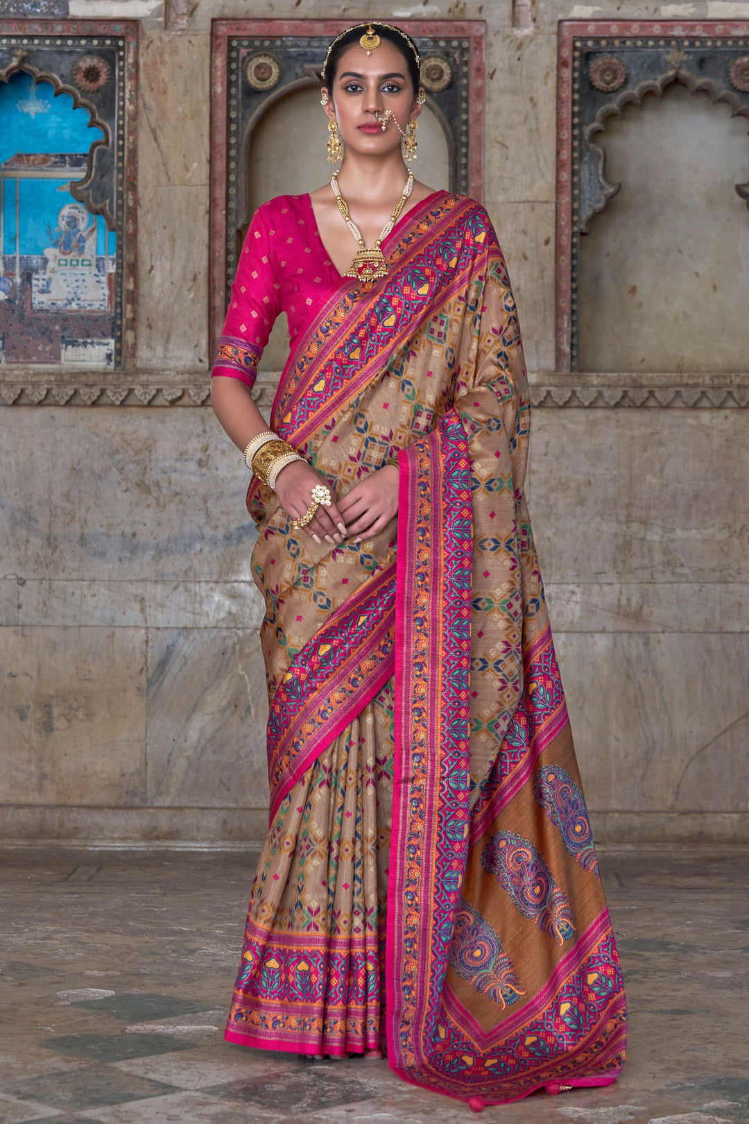 Beige Color Art Silk Fabric Stunning Patola Printed Saree