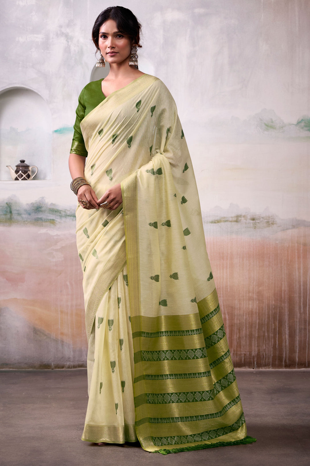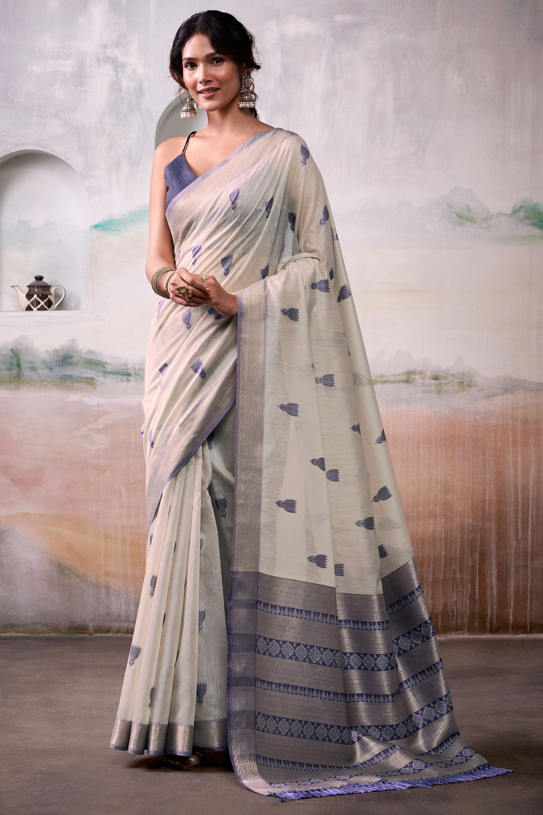 Weaving Work On Off White Color Gorgeous Cotton Silk Saree
