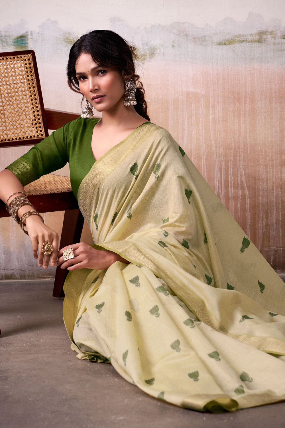 Sea Green Color Cotton Silk Saree With Winsome Weaving Work