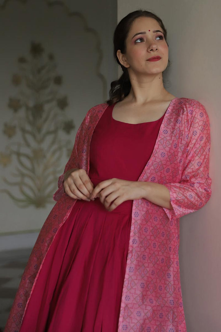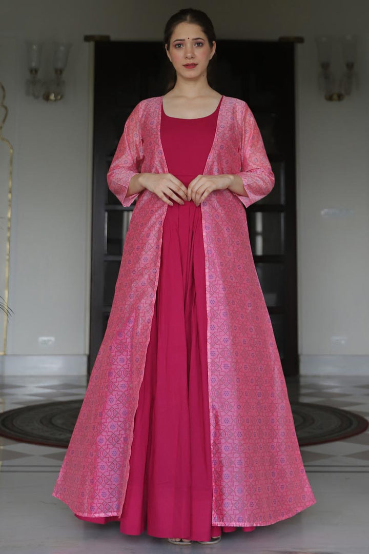 Designer Rani Color Party Style Embroidered Fancy Fabric Readymade Gown