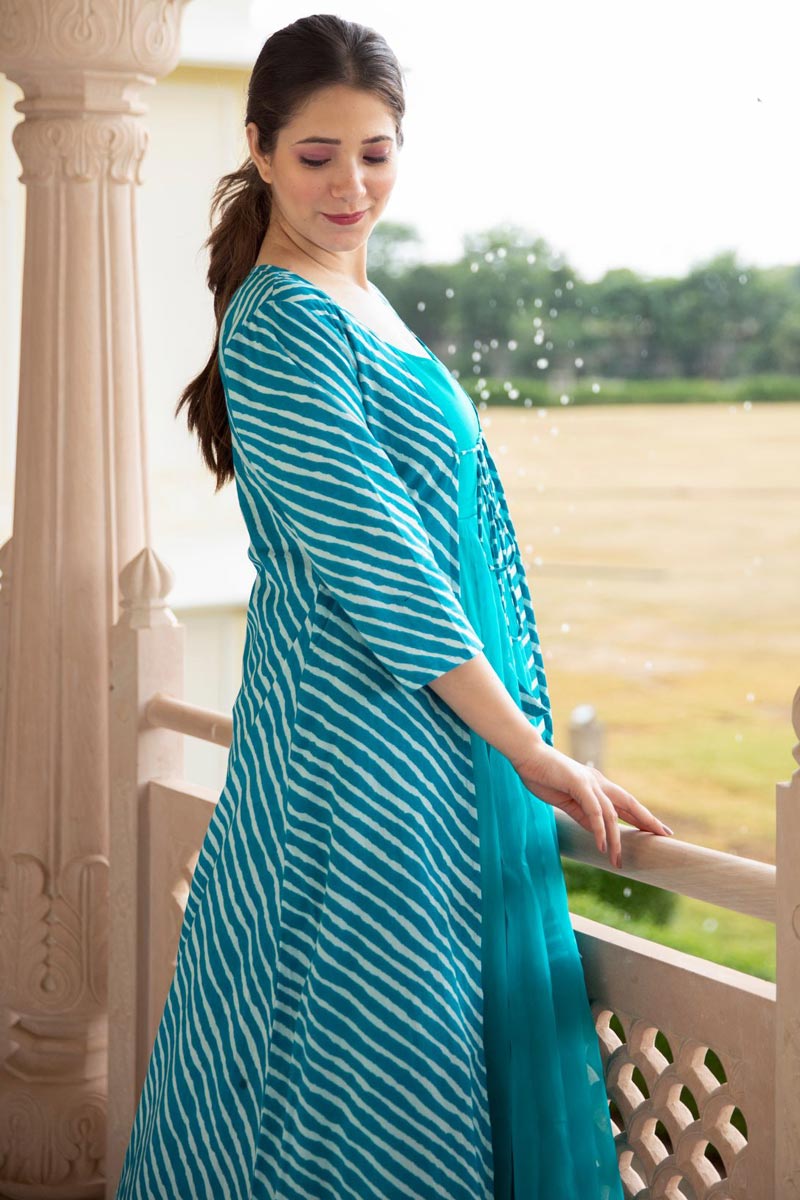 Fancy Fabric Party Style Designer Embroidered Readymade Gown In Cyan Color
