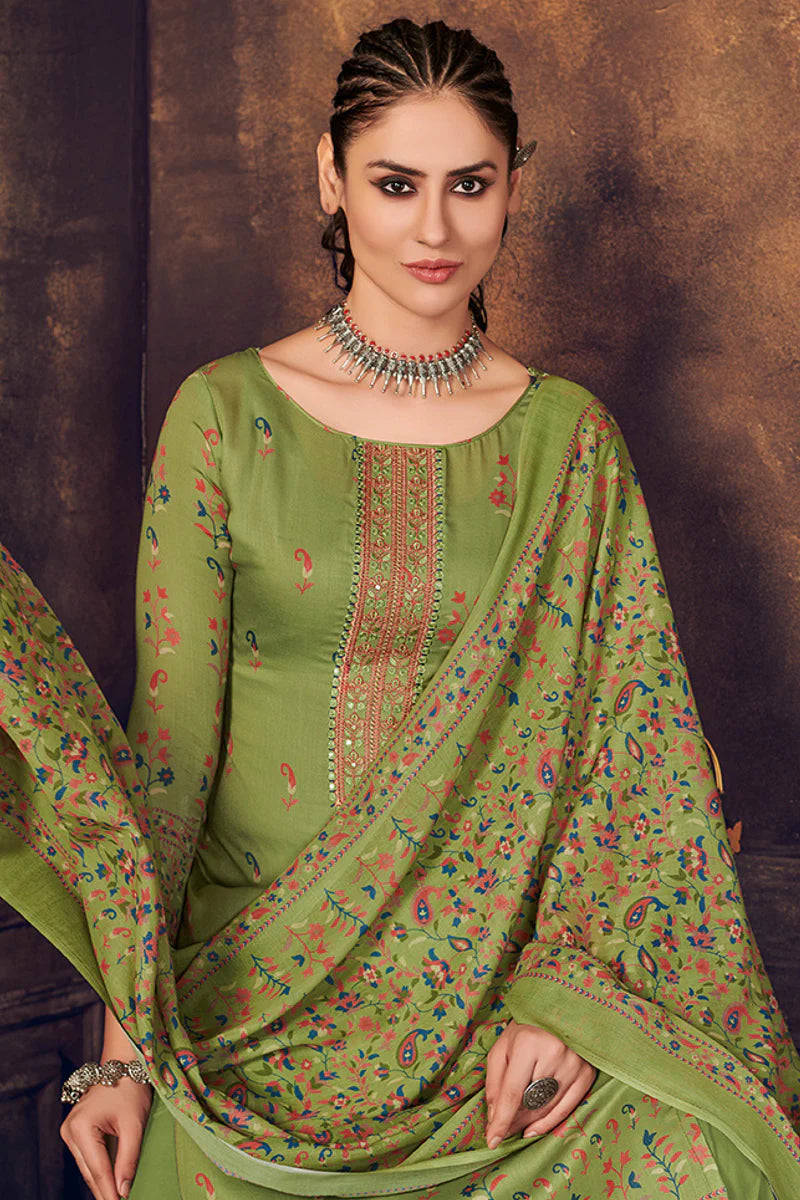 Attractive Cotton Fabric Green Color Digital Printed Palazzo Suit