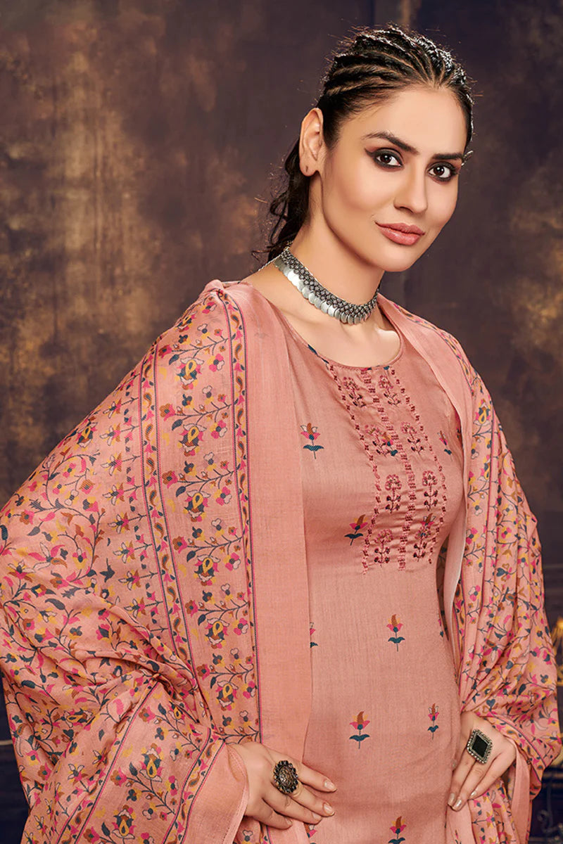 Classic Peach Color Digital Printed Palazzo Suit In Cotton Fabric