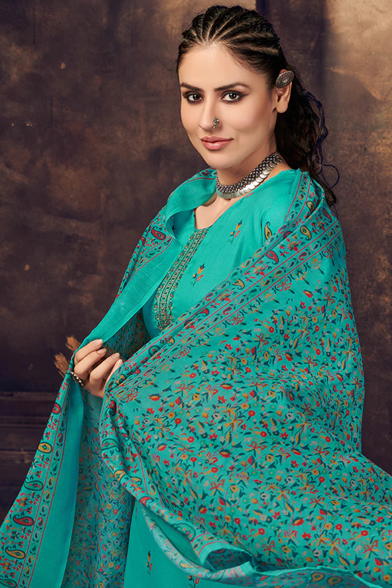Marvellous Cotton Fabric Digital Printed Palazzo Suit In Cyan Color