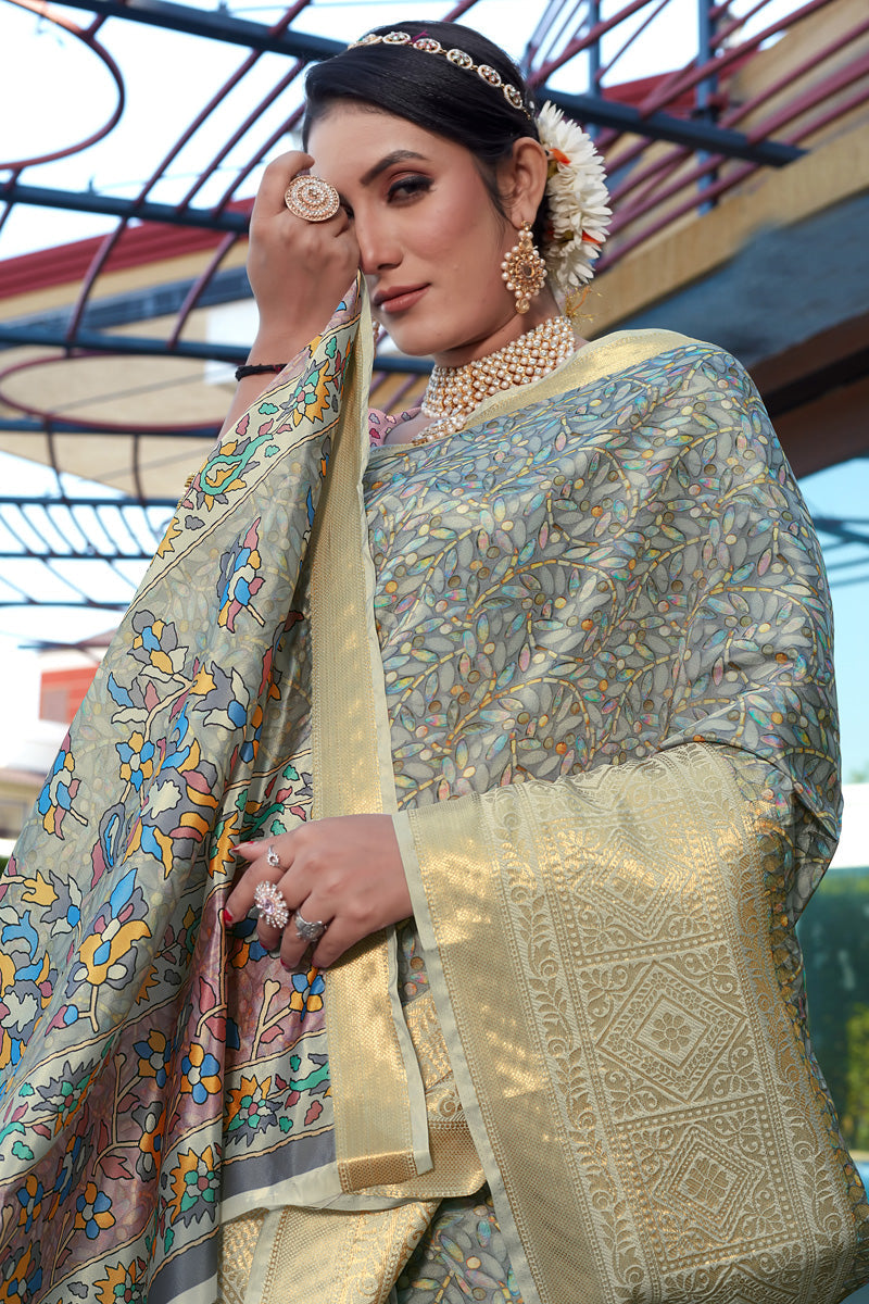 Appling Art Silk Fabric Festive Look Saree In Grey Color