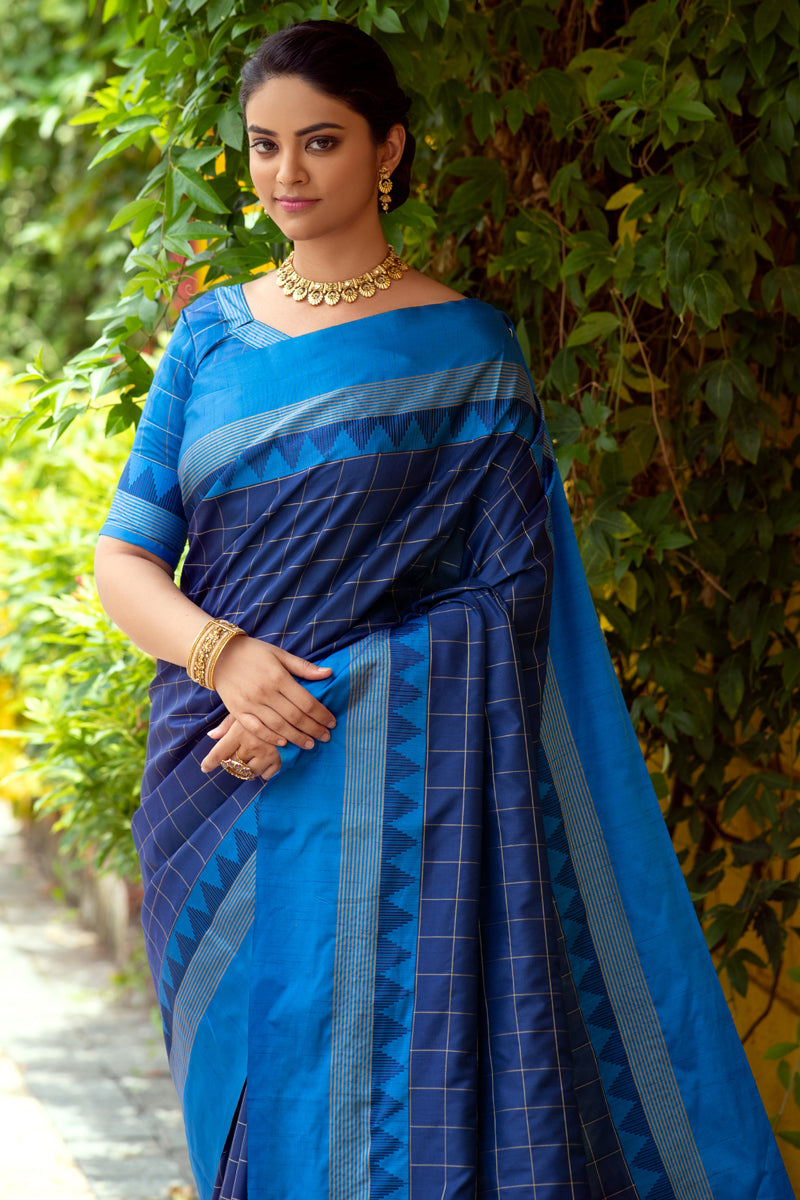 Art Silk Fabric Festive Look Beatific Saree In Navy Blue Color