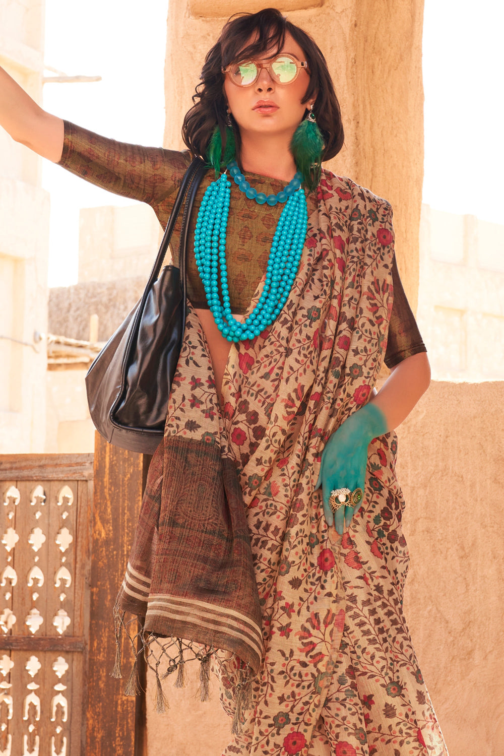 Beige Color Handwoven Printed Glamorous Tissue Fabric Saree