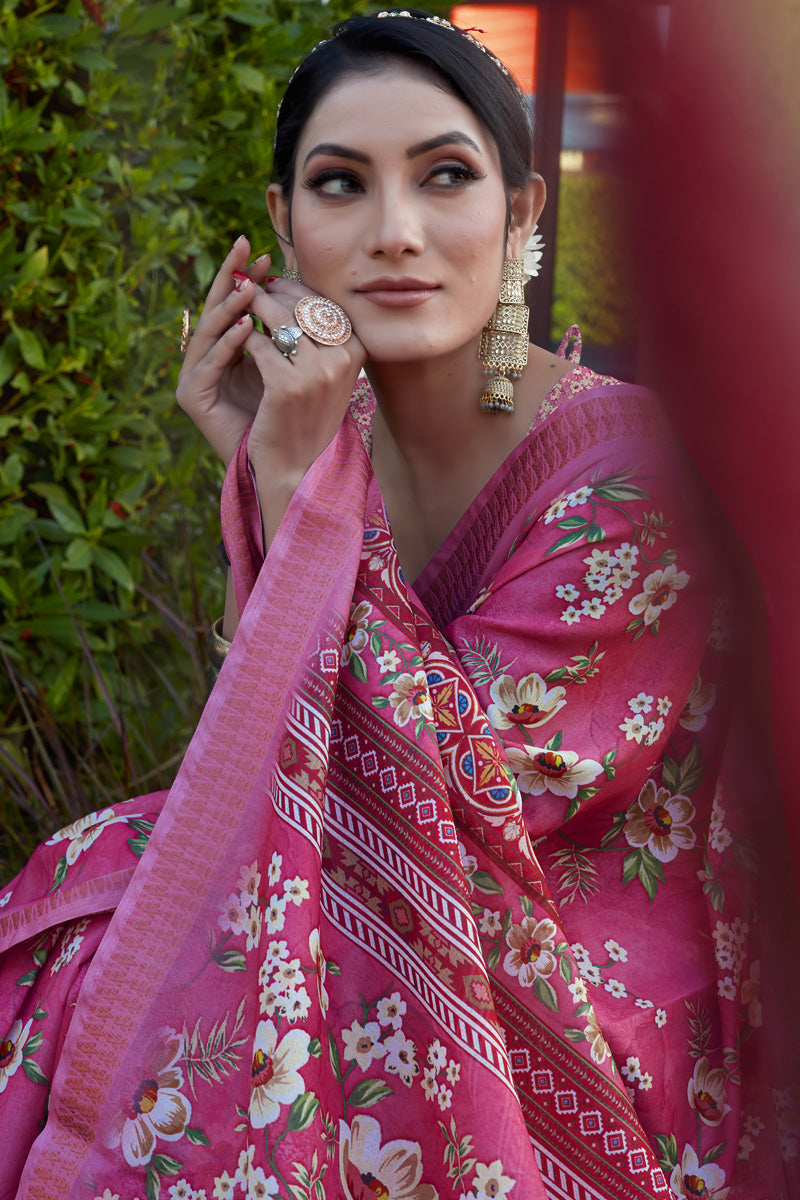 Classic Pink Color Festive Look Saree In Cotton Cotton Silk Fabric
