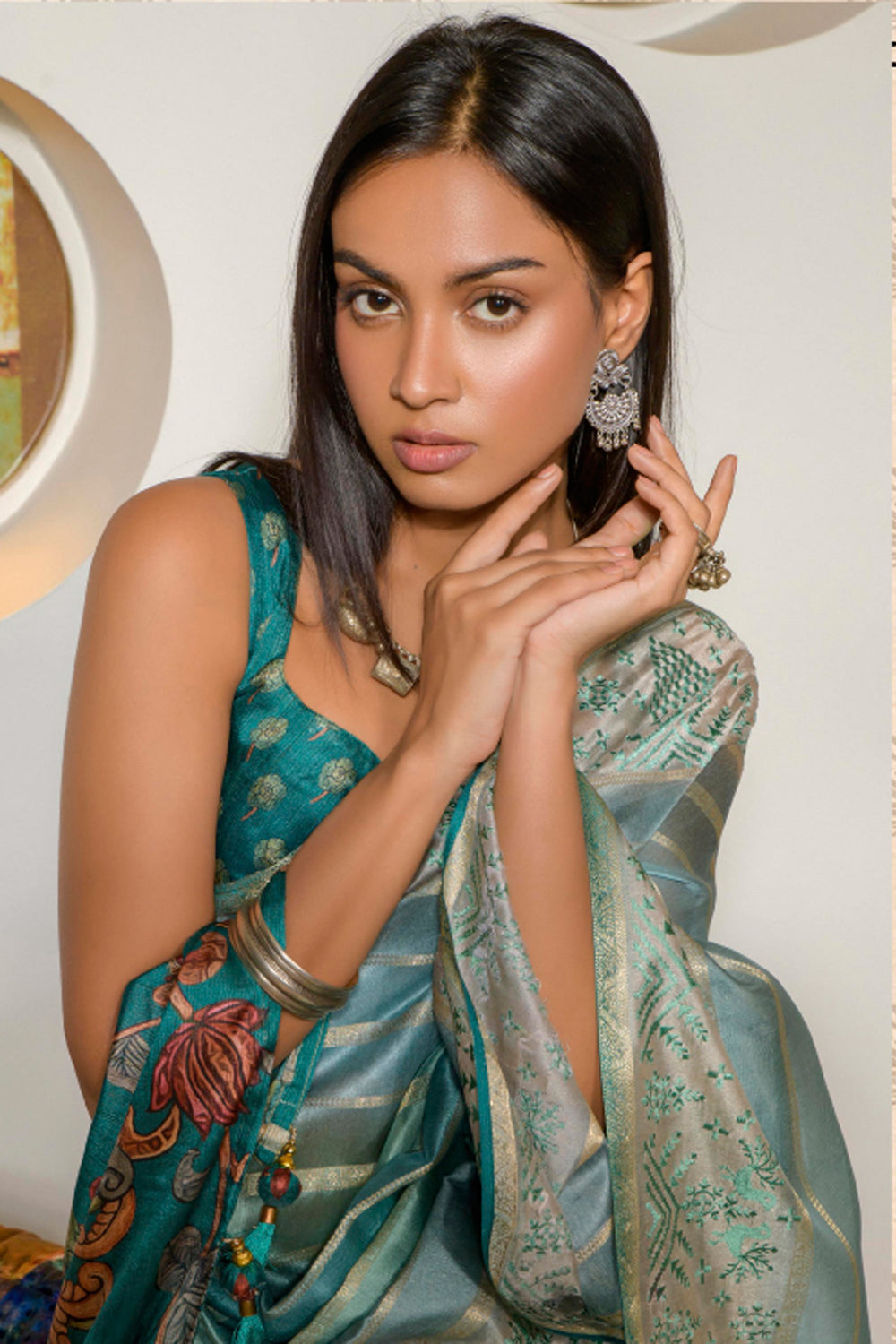 Delicate Multi Color Organza Fabric Printed Festive Wear Saree
