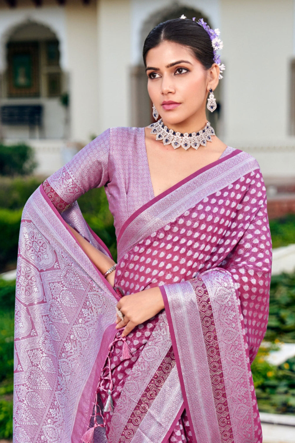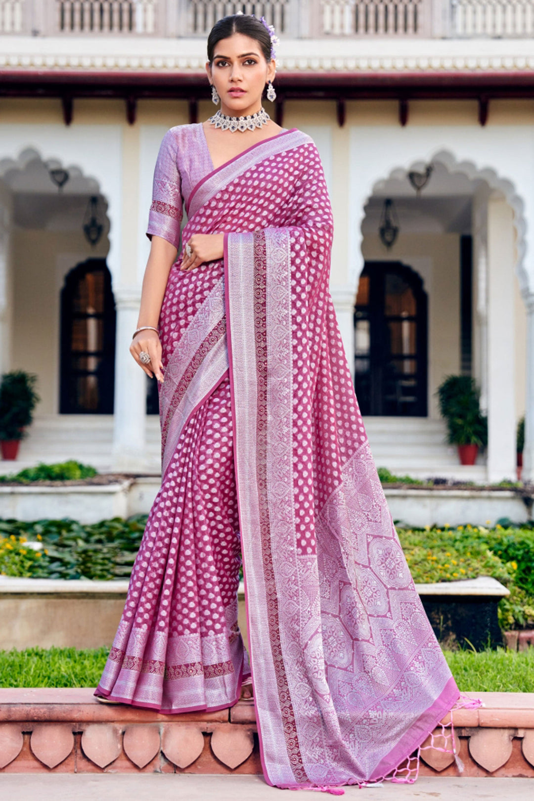 Georgette Fabric Magenta Color Excellent Saree With Weaving Work