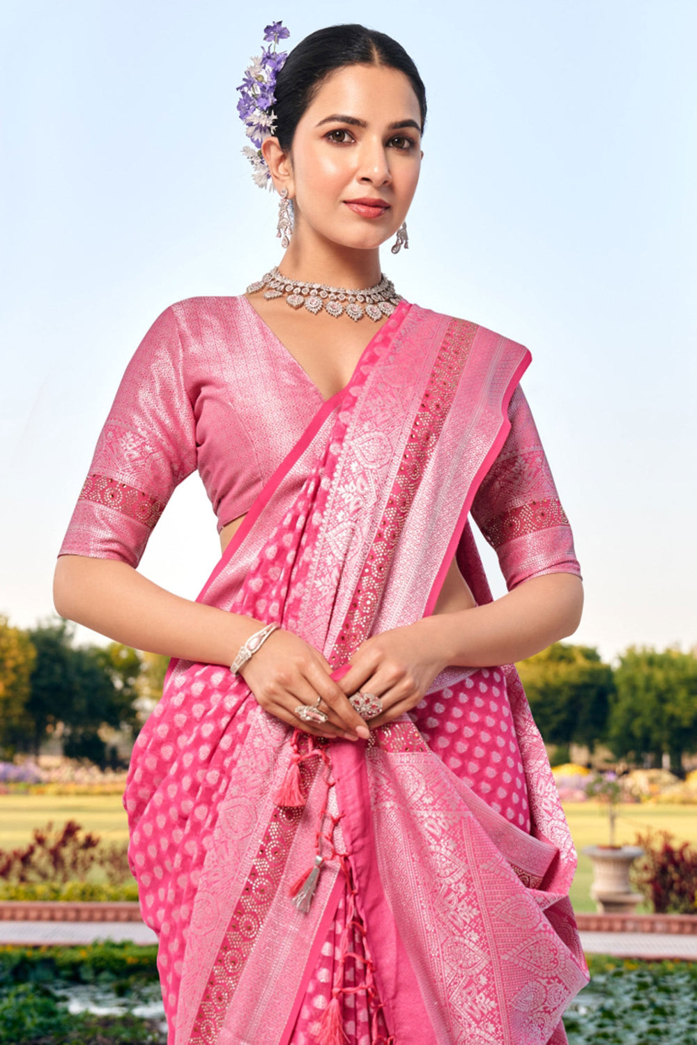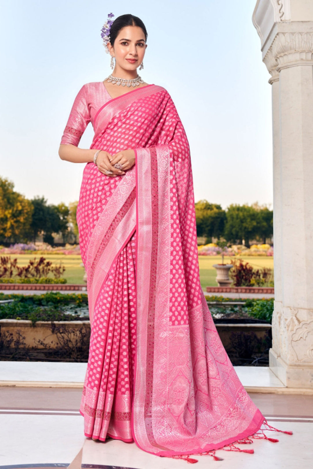 Georgette Fabric Pink Color Patterned Saree With Weaving Work