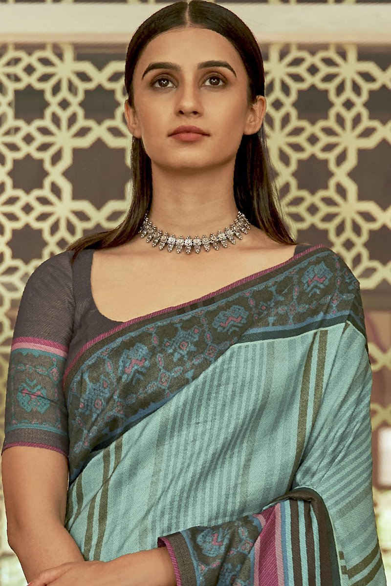 Art Silk Fabric Casual Wear Cyan Color Printed Saree