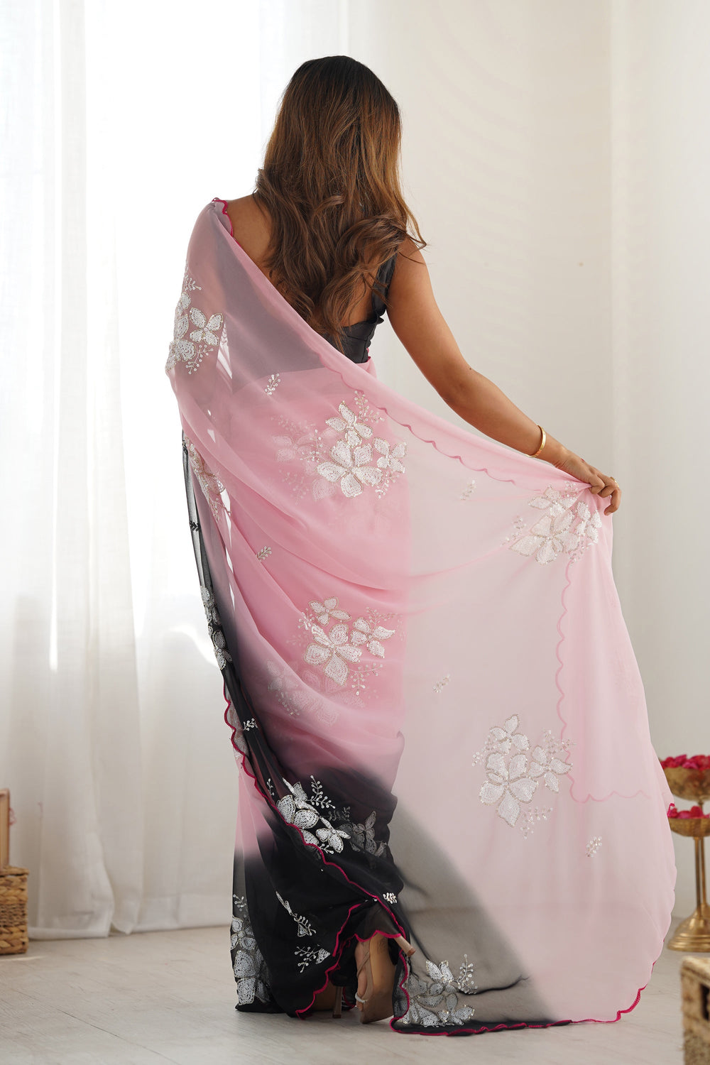 Beautiful Pink Sequins Work Party Wear Saree