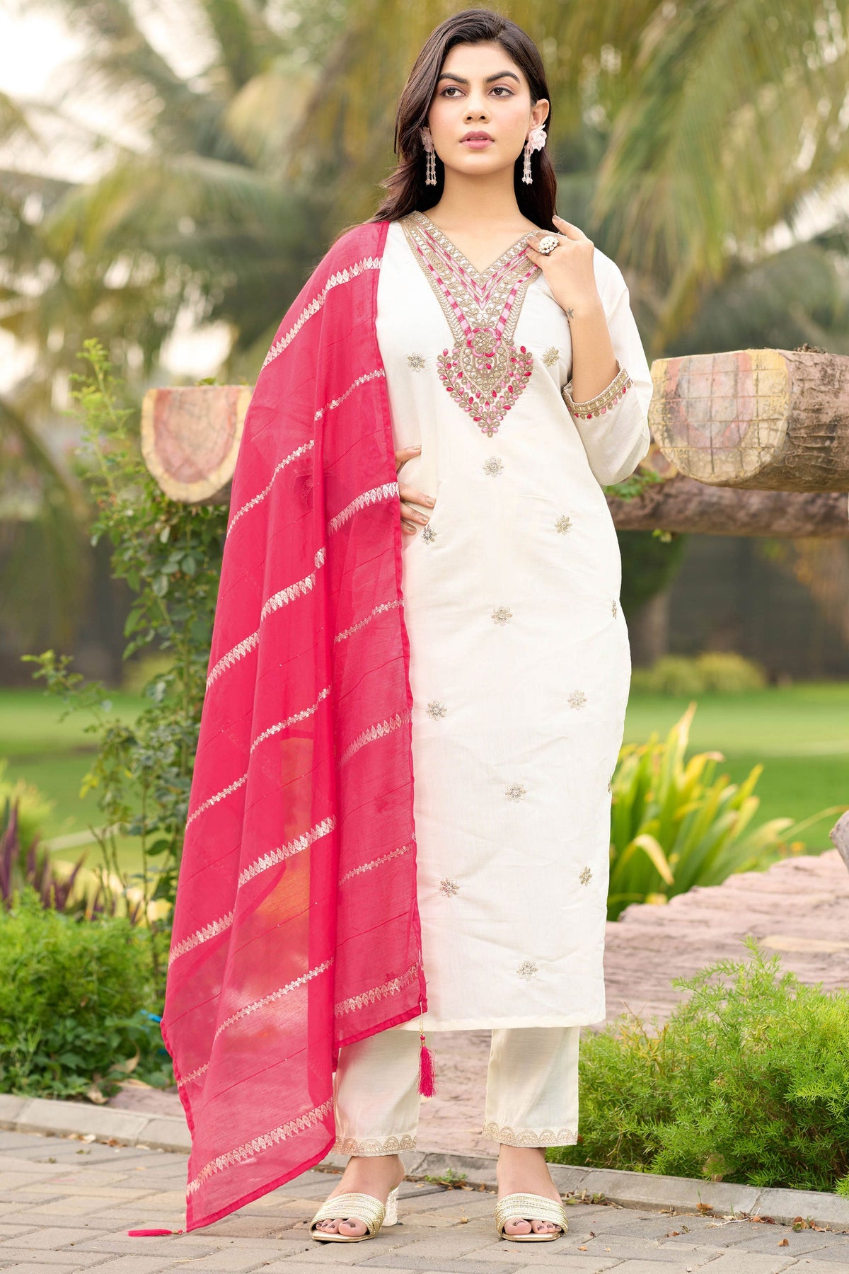 Art Silk Fabric White Color Amazing Readymade Salwar Suit