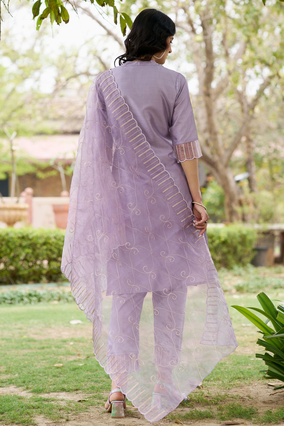 Lavender Color Silk Fabric Coveted Readymade Salwar Suit