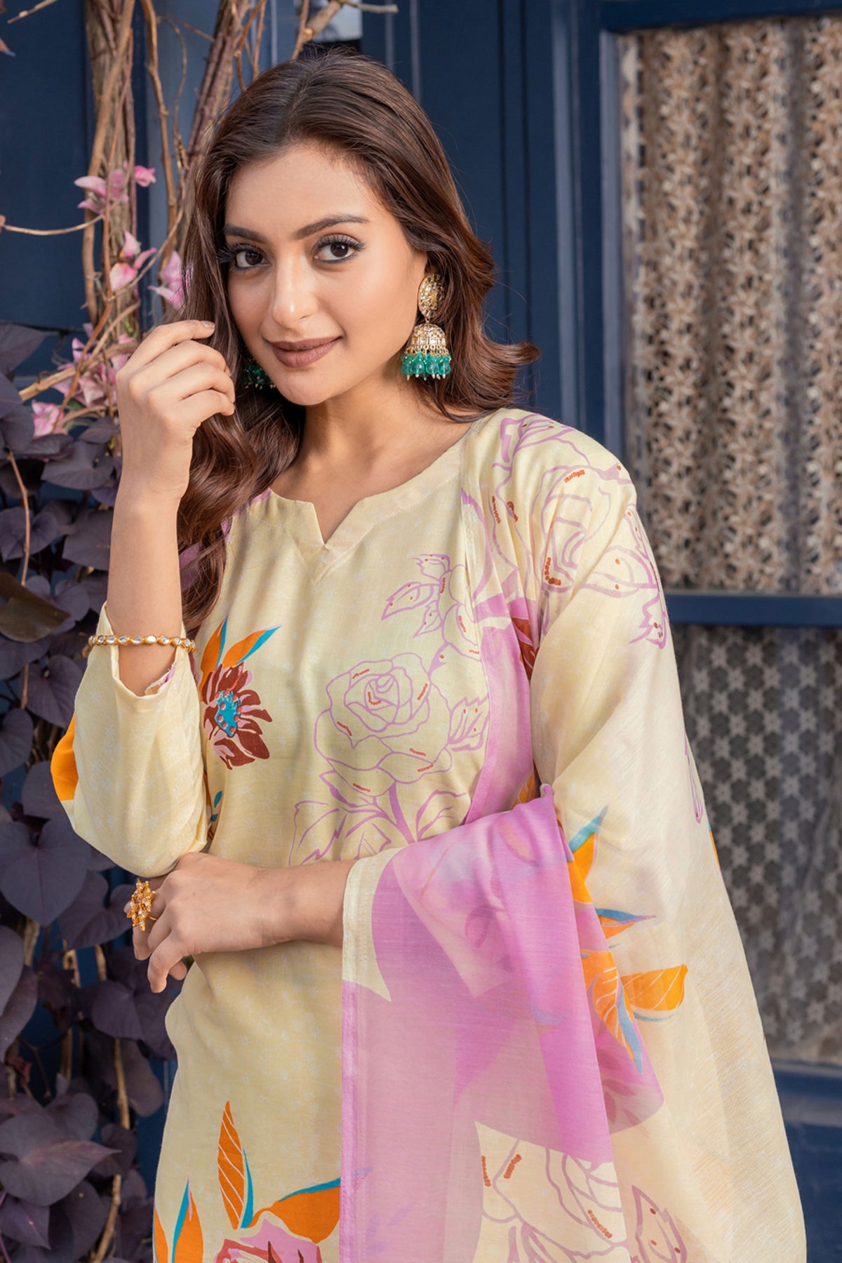 Tempting Cotton Fabric Cream Color Readymade Printed Salwar Suit