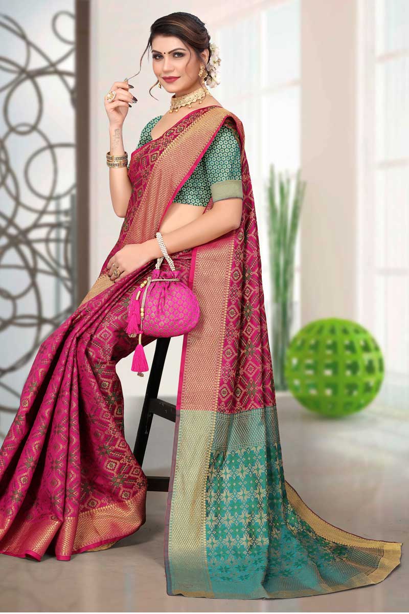 Art Silk Fabric Beatific Weaving Work Rani Color Saree