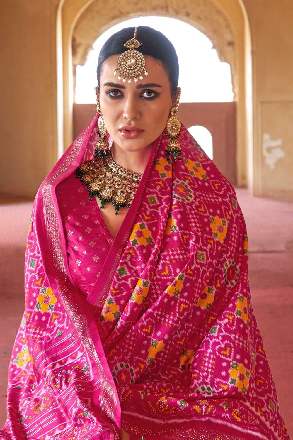 Art Silk Fabric Rani Color Patola Printed Festive Saree