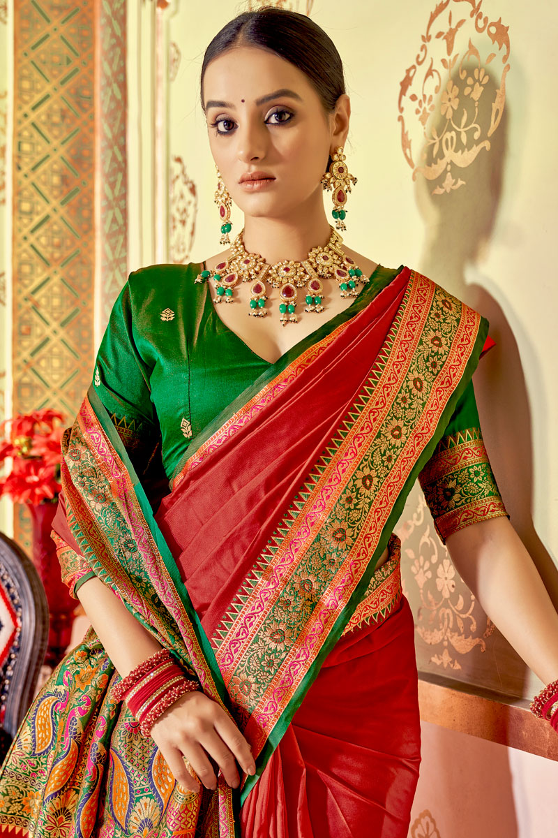 Art Silk Fabric Red Color Weaving Work Mesmeric Saree