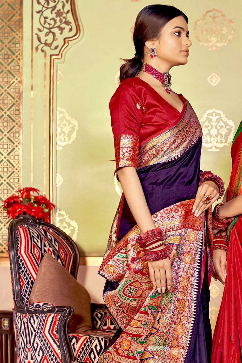 Art Silk Fabric Weaving Work Amazing Saree In Purple Color