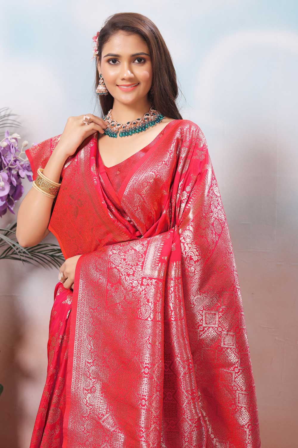 Art Silk Weaving Banarasi Jari Work Saree In Pink Color