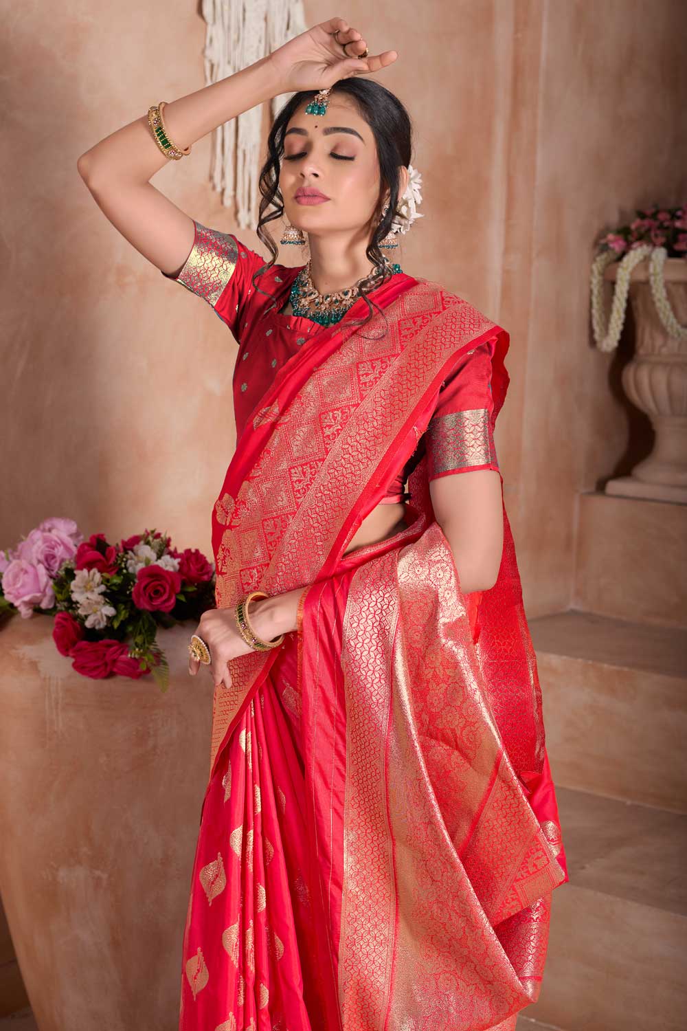 Beguiling Red Color Weaving Banarasi Jari Silk Saree