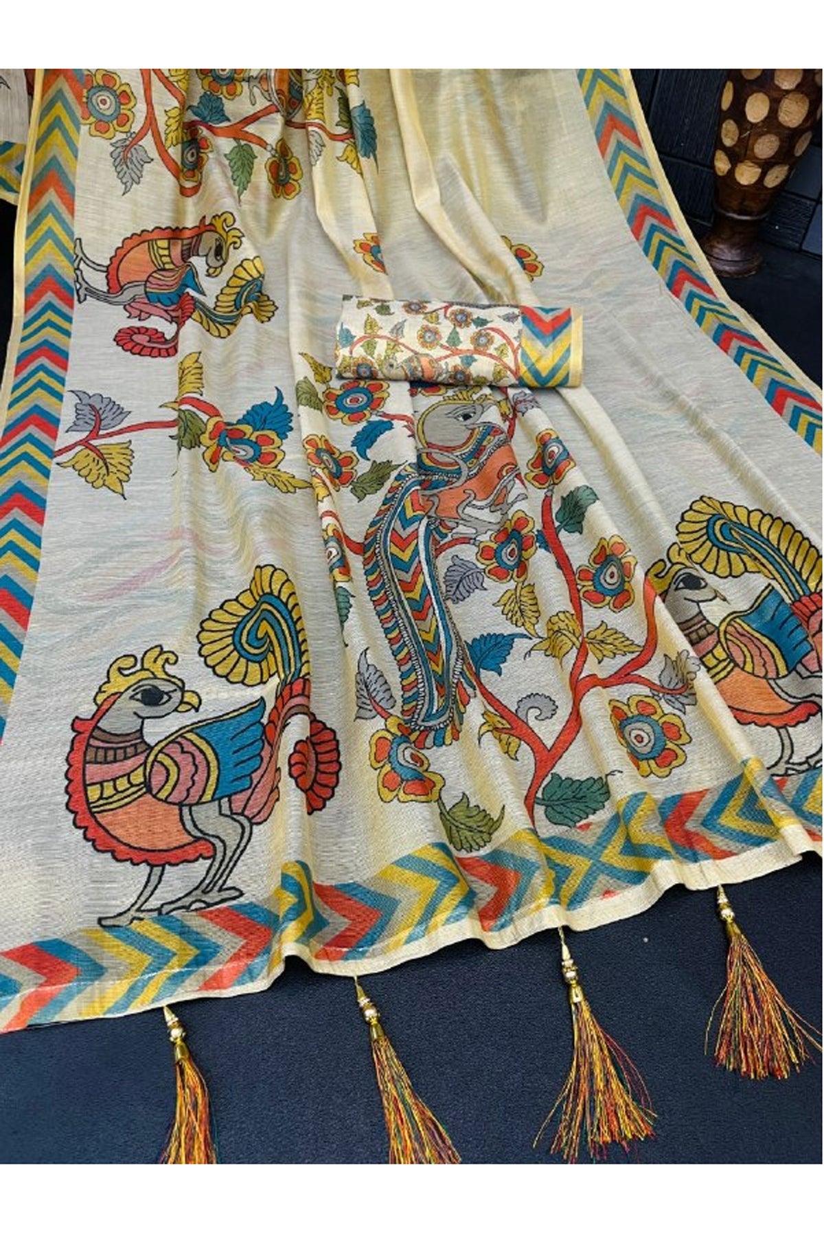 Beige Color Fantastic Art Silk Fabric Printed Saree
