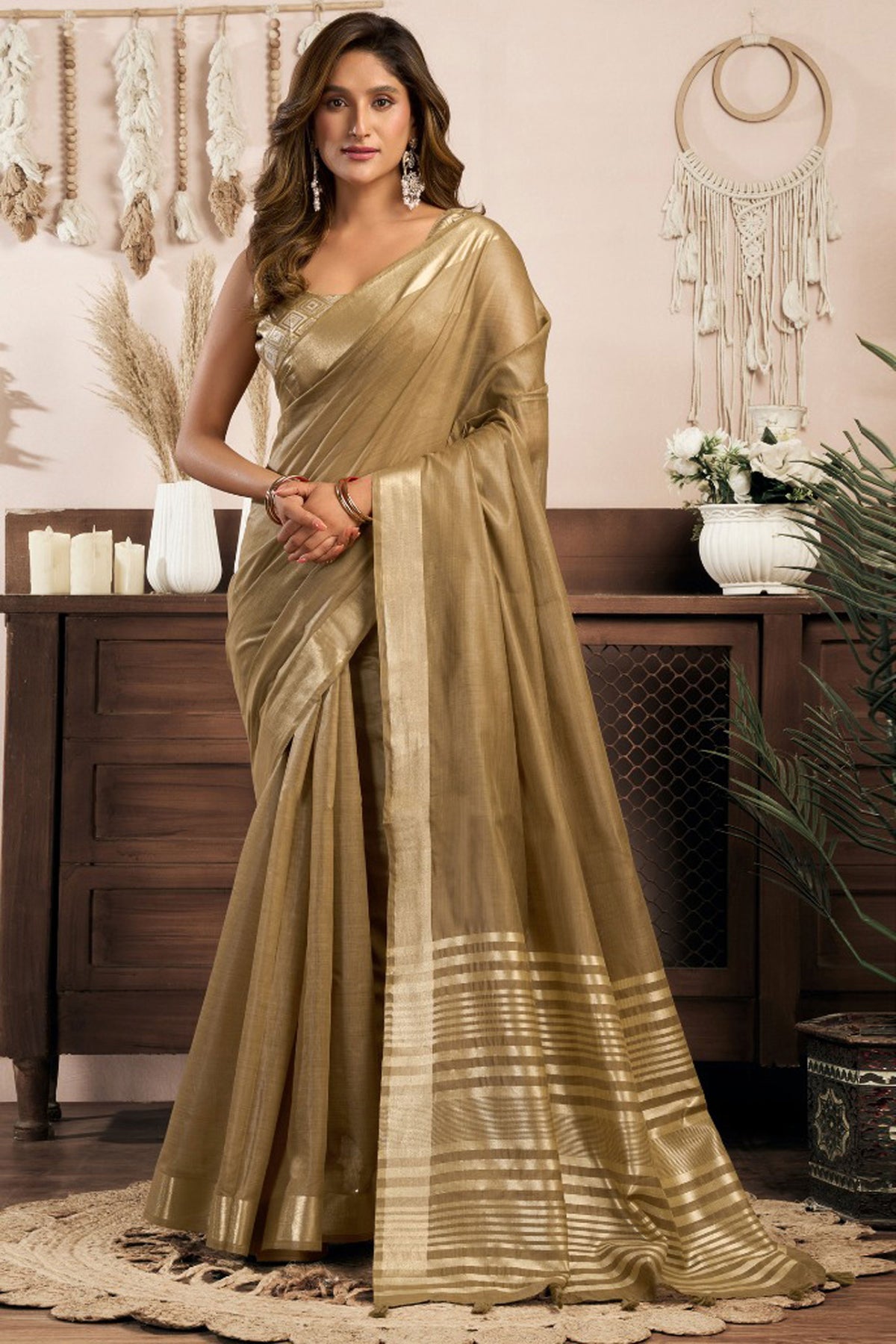 Brown Color Pleasant Khadi Cotton Saree