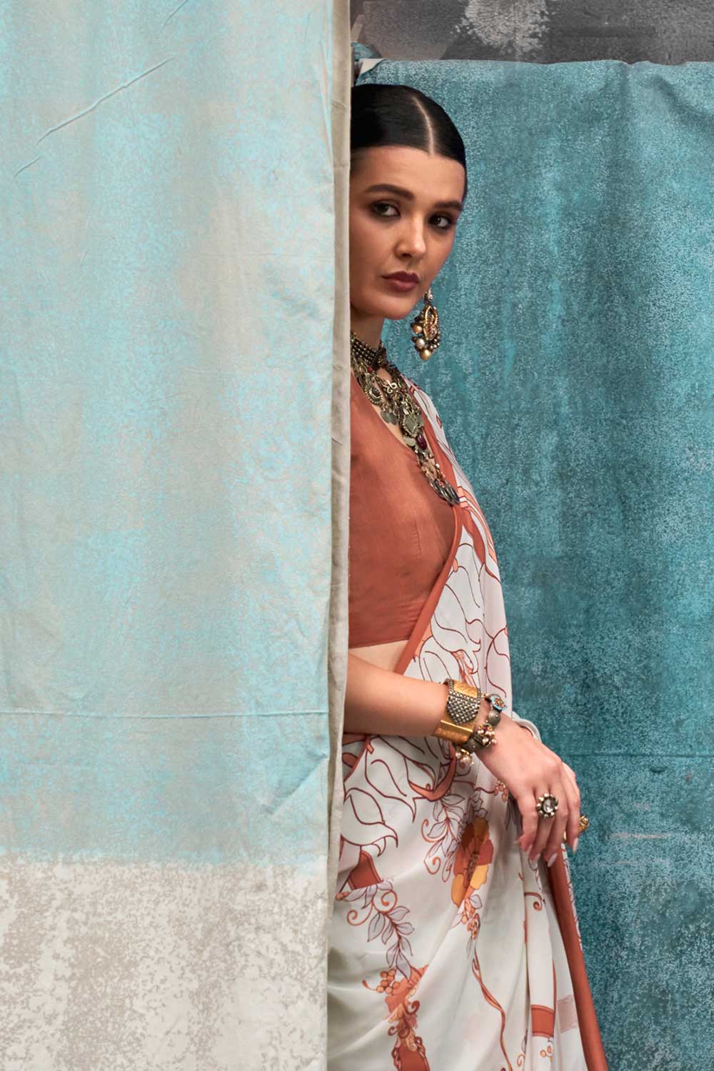 Step into casual elegance with our stunning Printed Crepe Saree, designed for the modern woman who loves to blend tradition with contemporary style.