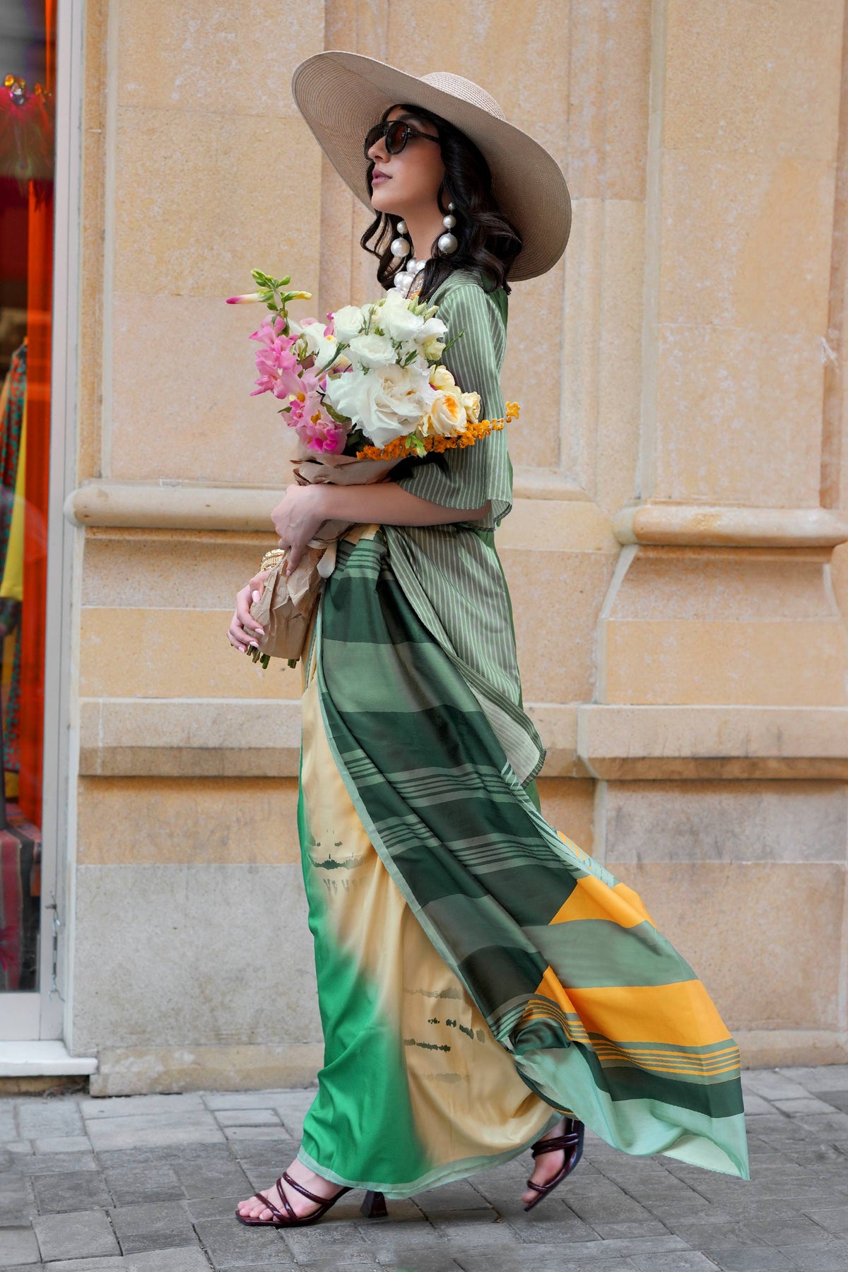 Digital Print On Multi Color Art Silk Fabric Trendy Saree