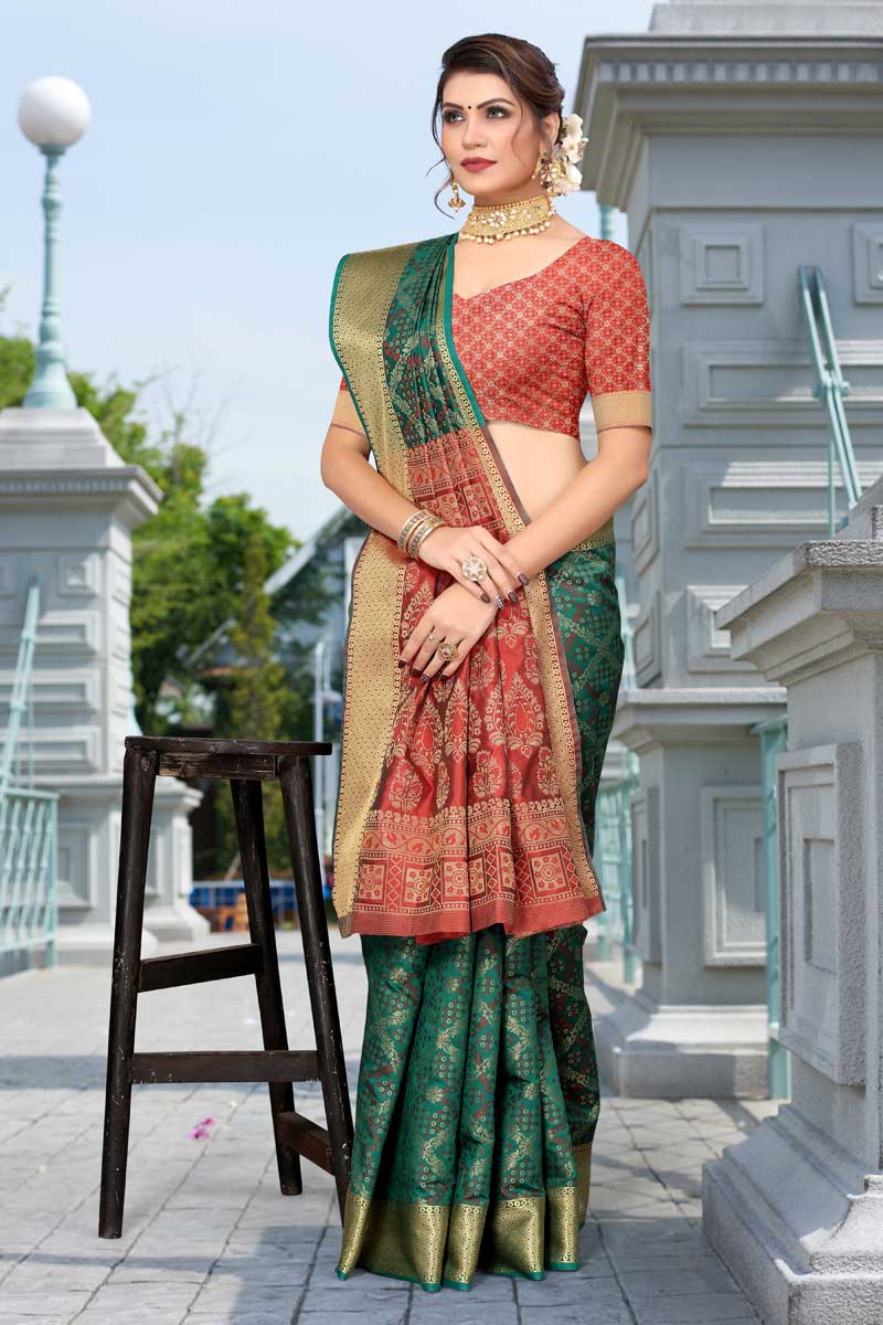 Engaging Teal Color Patola Silk Fabric Saree With Jacquard Work
