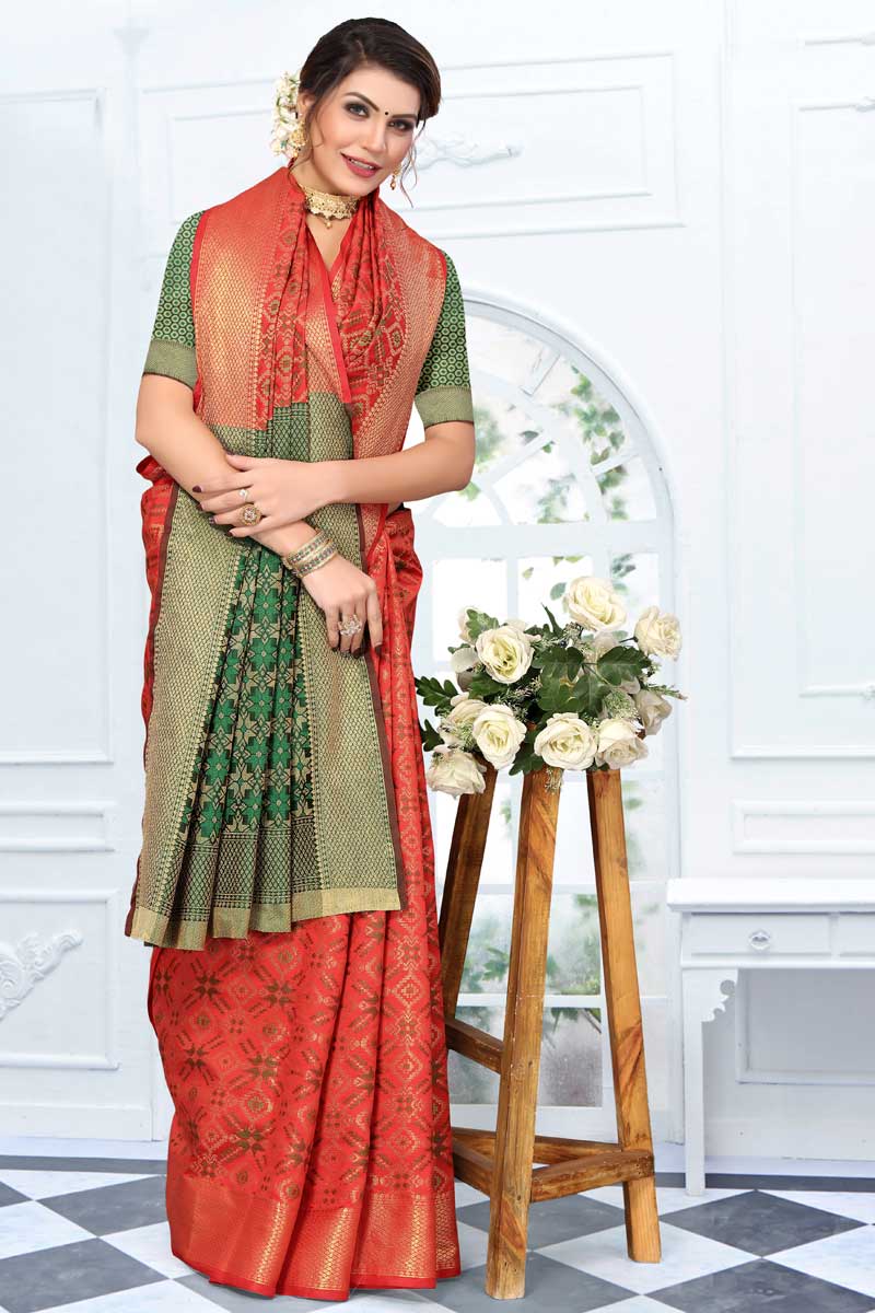 Excellent Art Silk Fabric Red Color Weaving Work Saree