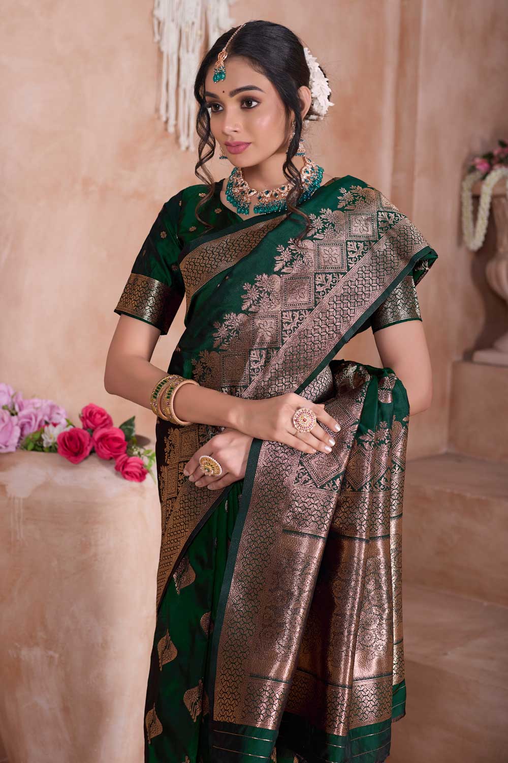 Excellent Dark Green Color Weaving Banarasi Jari Silk Saree