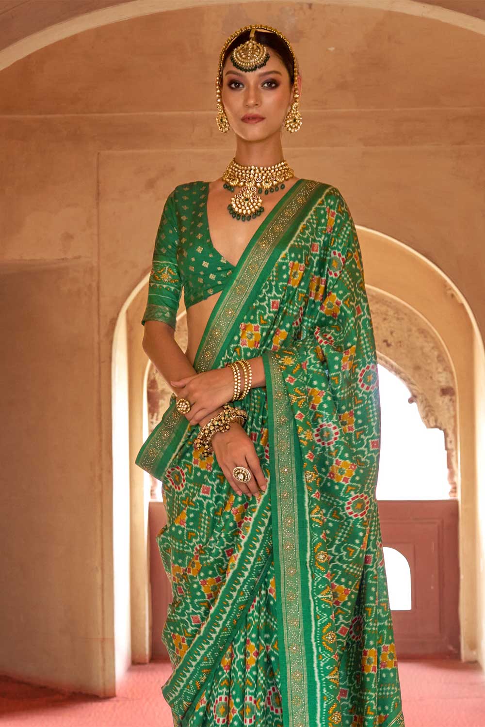 Green Color Art Silk Fabric Patola Printed Festive Saree