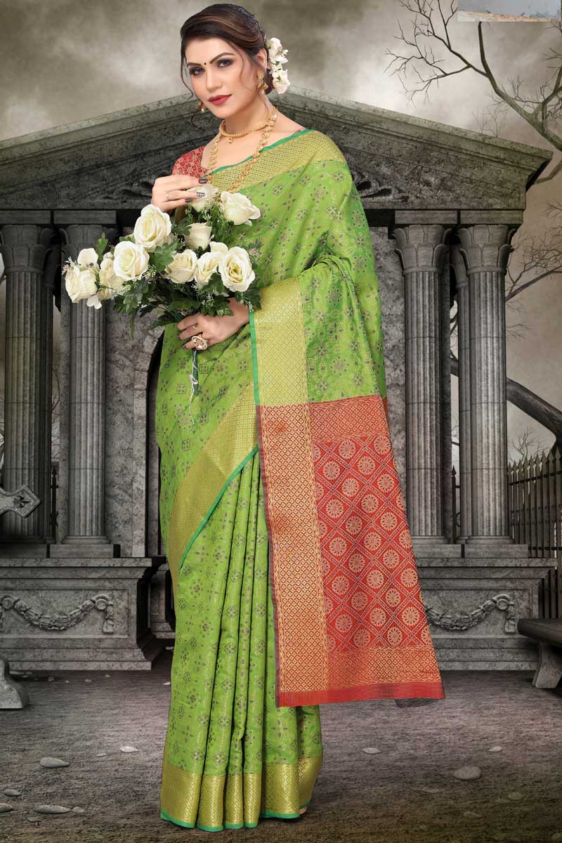 Green Color Festival Wear Patola Silk Fabric Beatific Saree