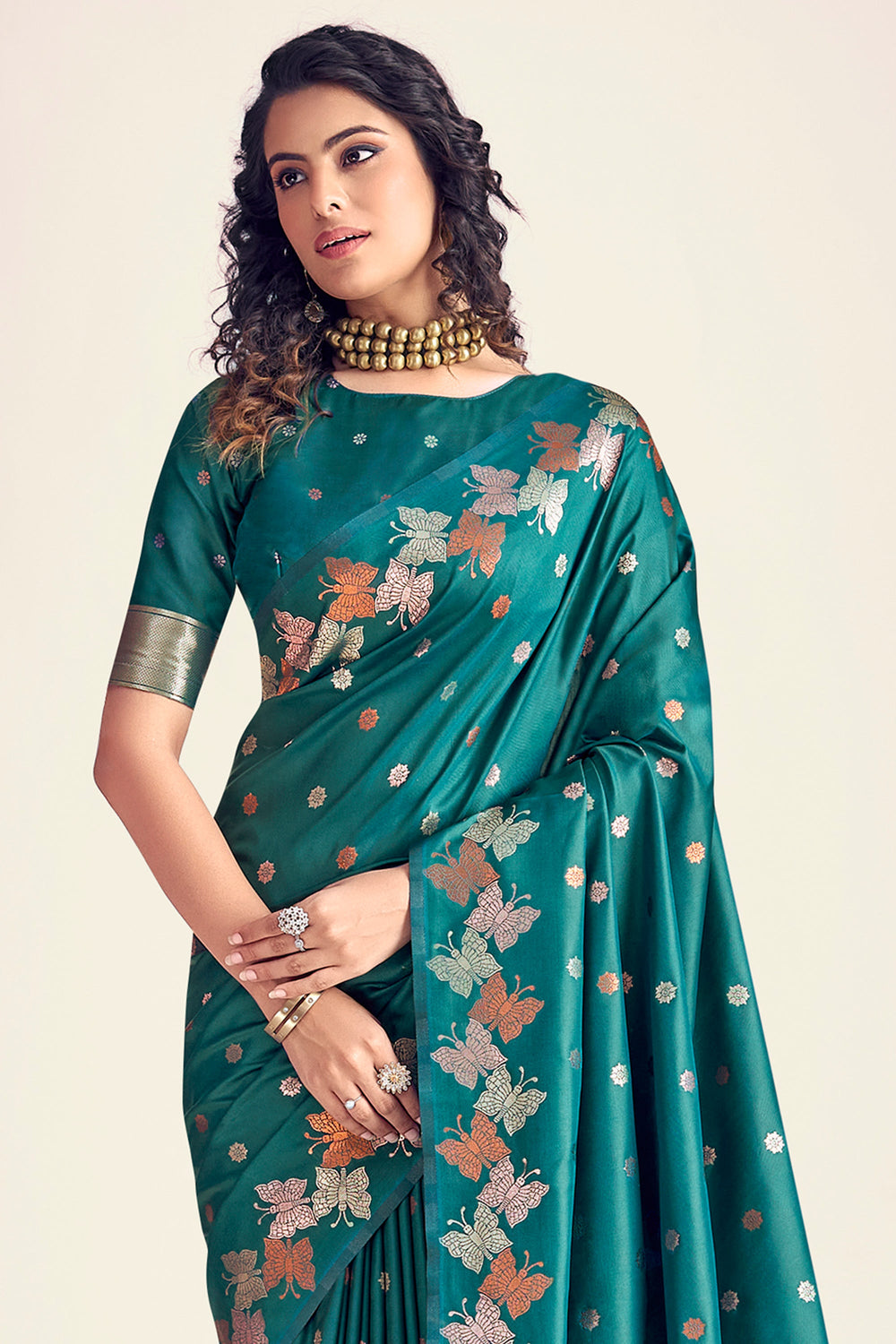 Green Color Gorgeous Printed Banarasi Style Silk Saree