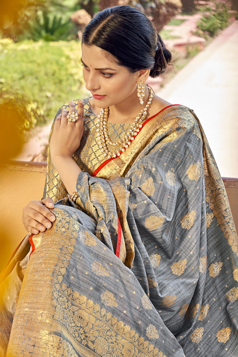 Grey Color Weaving Work Festival Wear Art Silk Fabric Splendid Saree