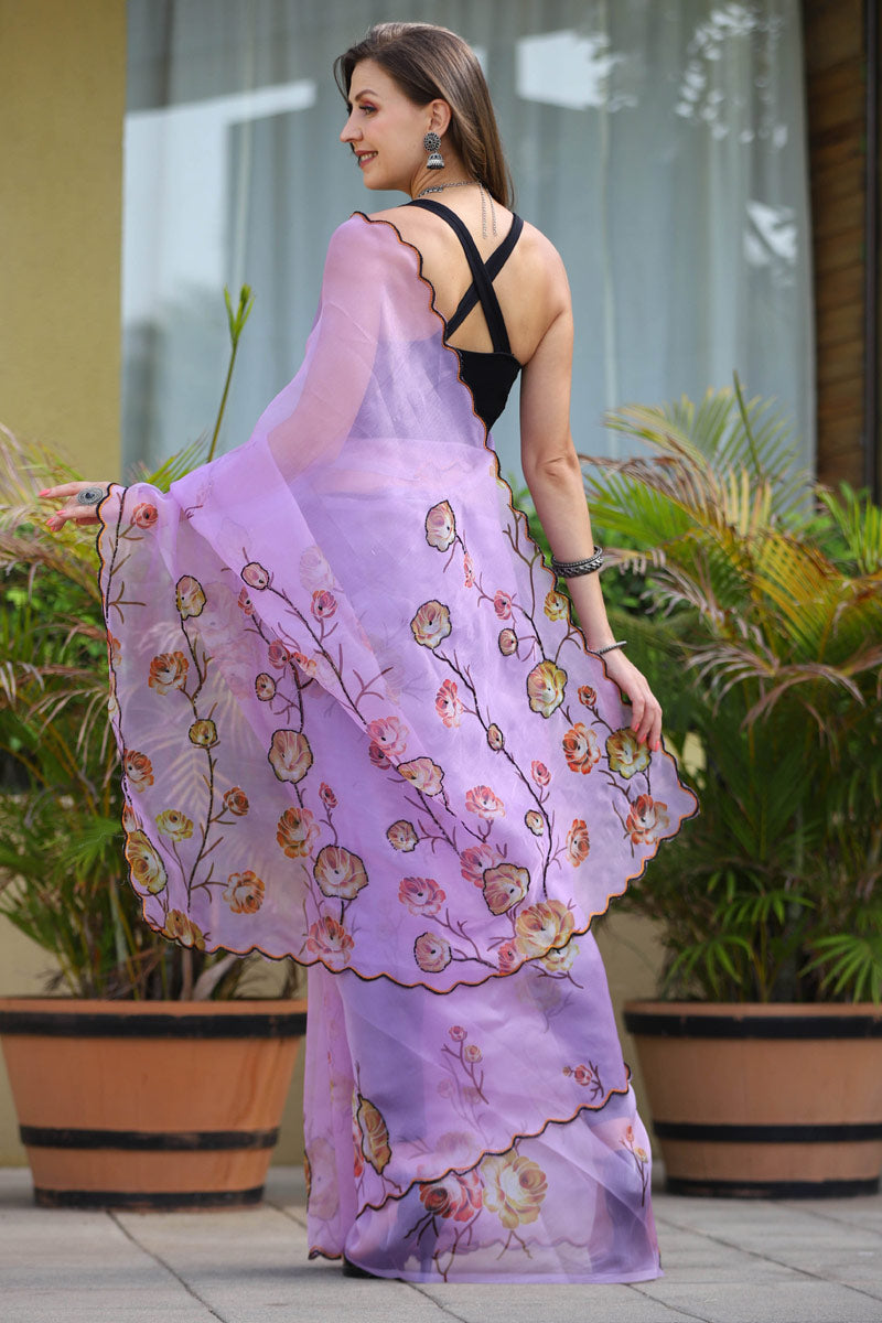 Lavender Color Organza Fabric Party Style Beatific Saree