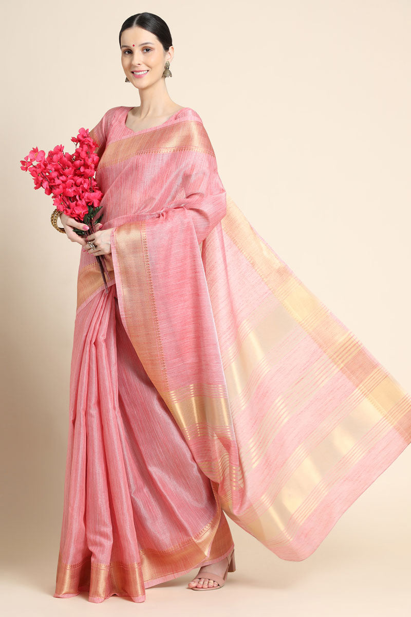 Linen Pink Casual Look Saree
