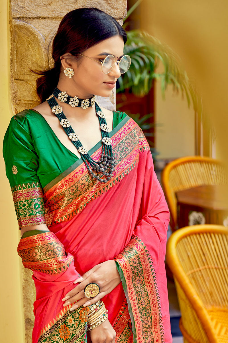 Pink Color Art Silk Fabric Weaving Work Superlative Saree