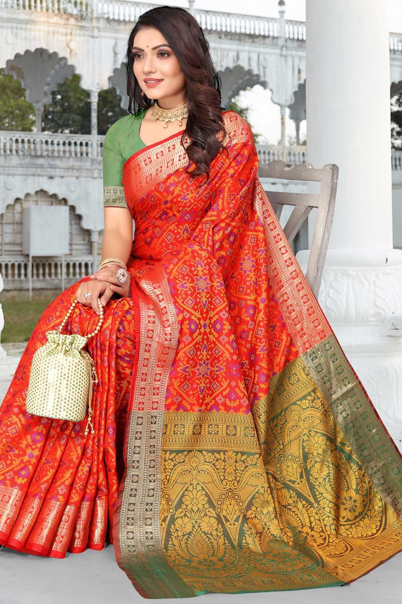 Radiant Red Color Patola Silk Fabric Weaving Work Saree