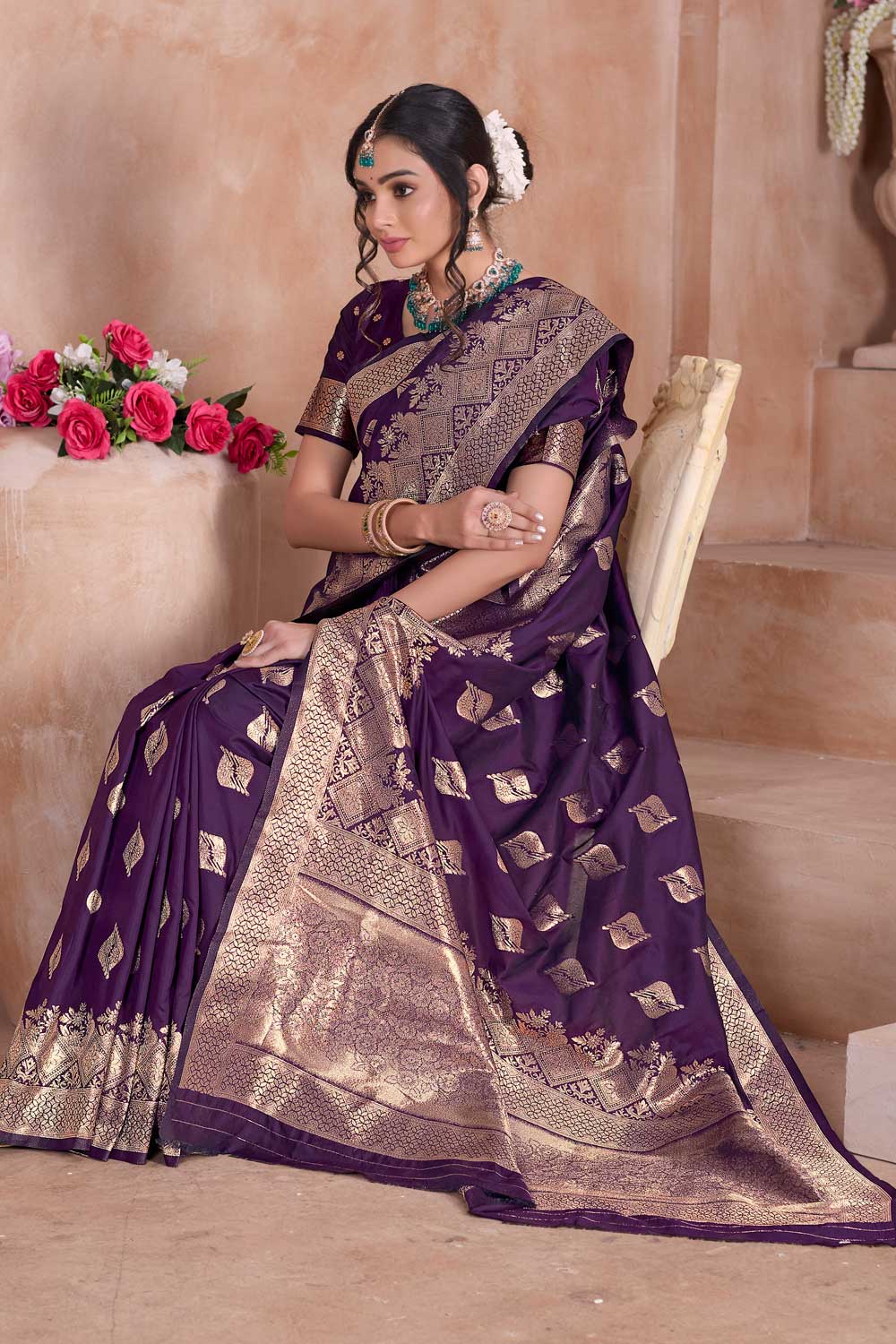 Radiant Wine Color Weaving Banarasi Jari Silk Saree