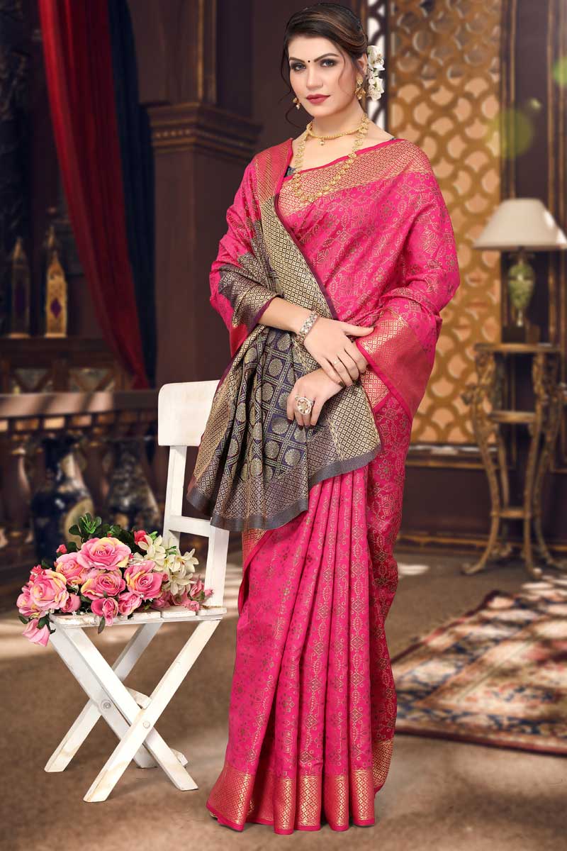 Tempting Patola Silk Fabric Rani Color Saree In Festival Wear