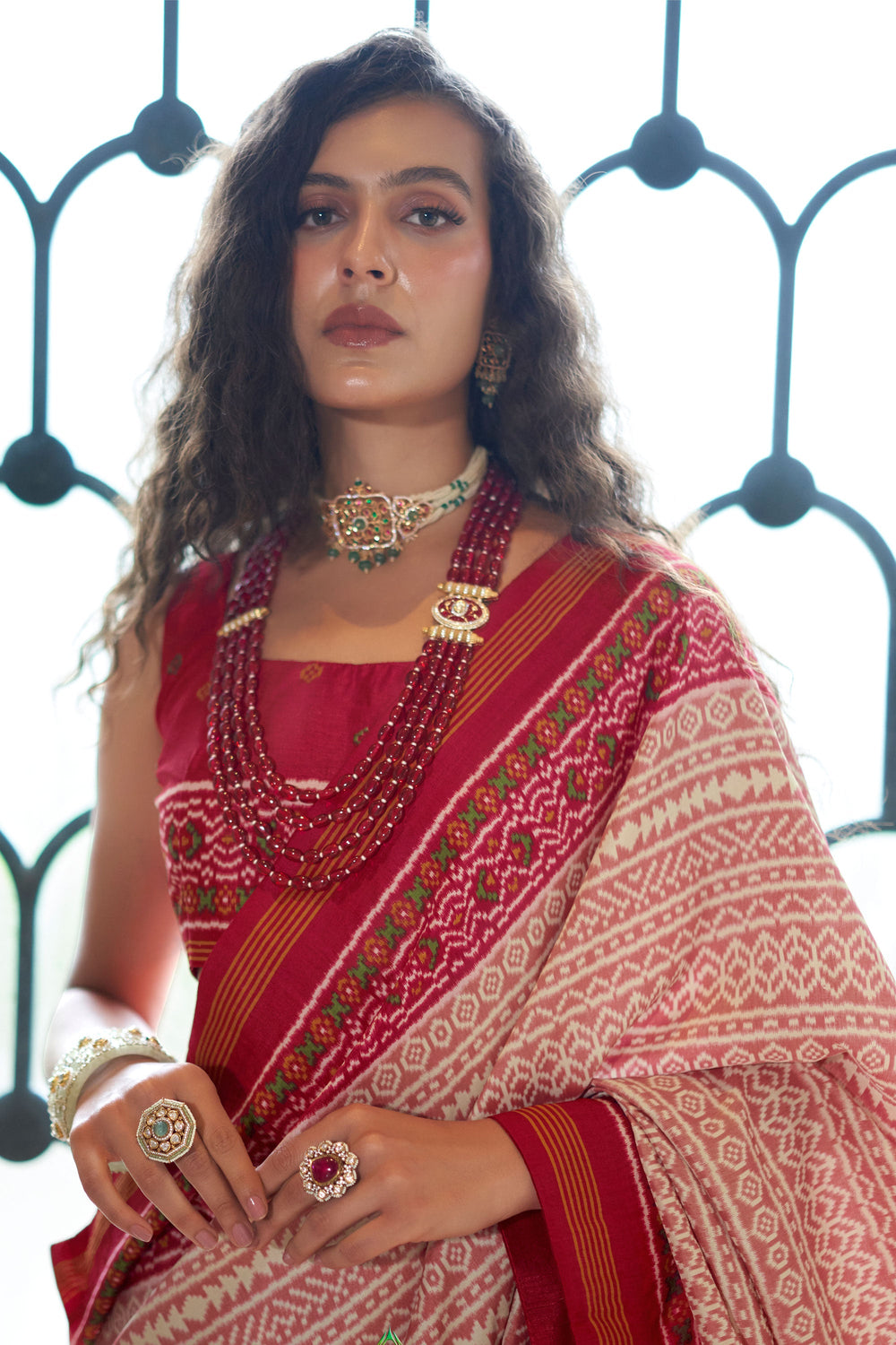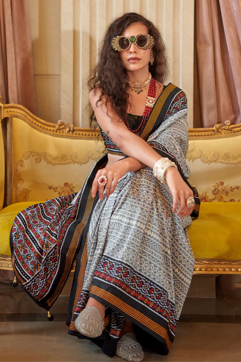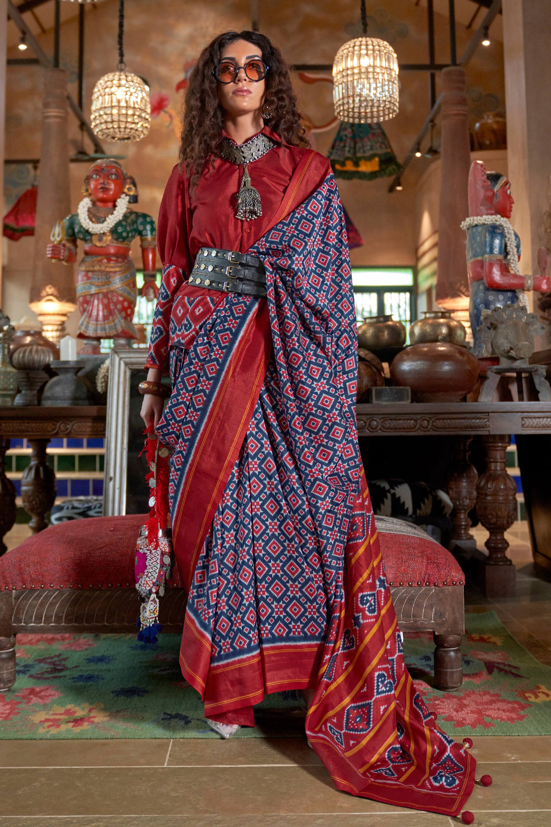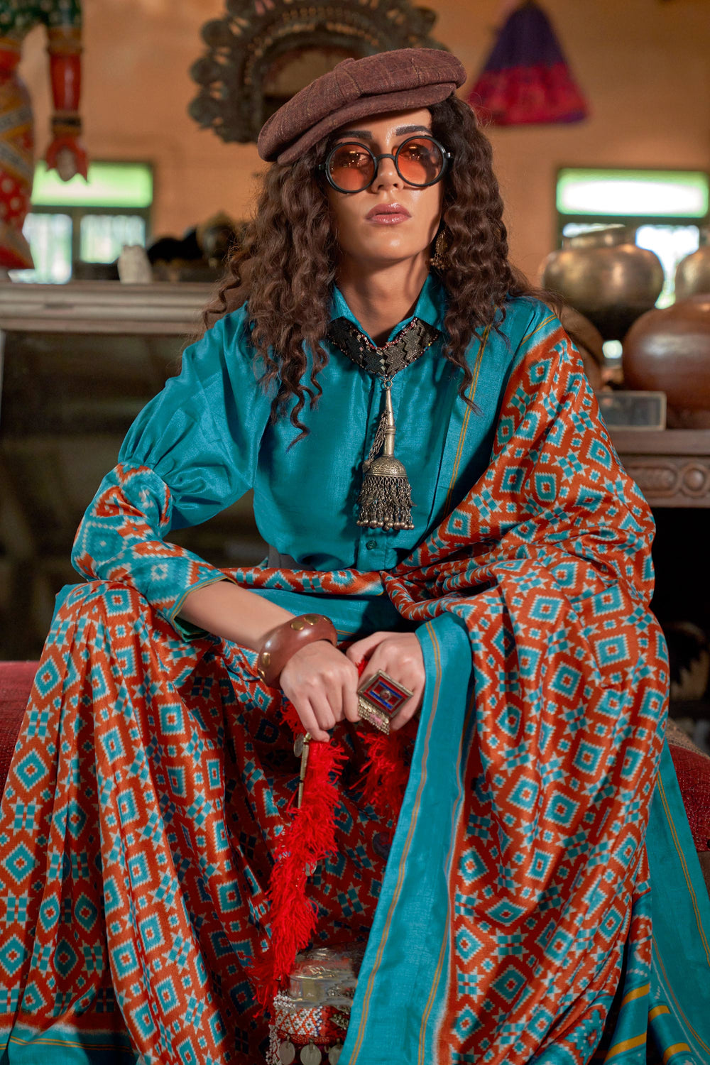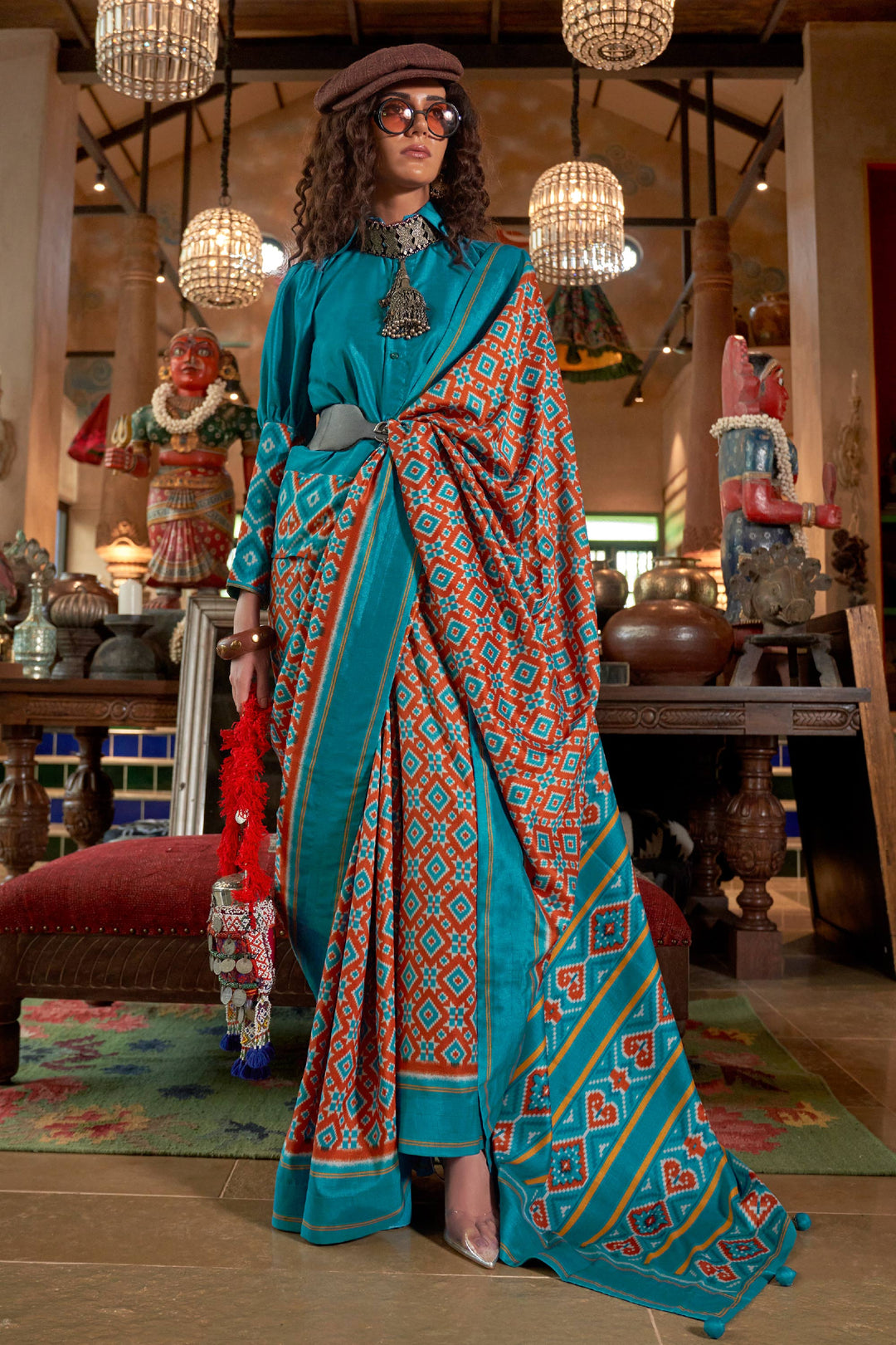 Heavy Art Silk Fabric Patola Printed Rust Color Saree