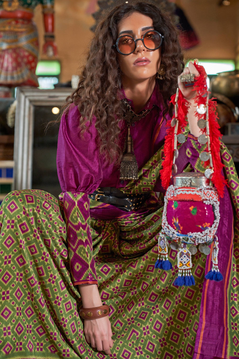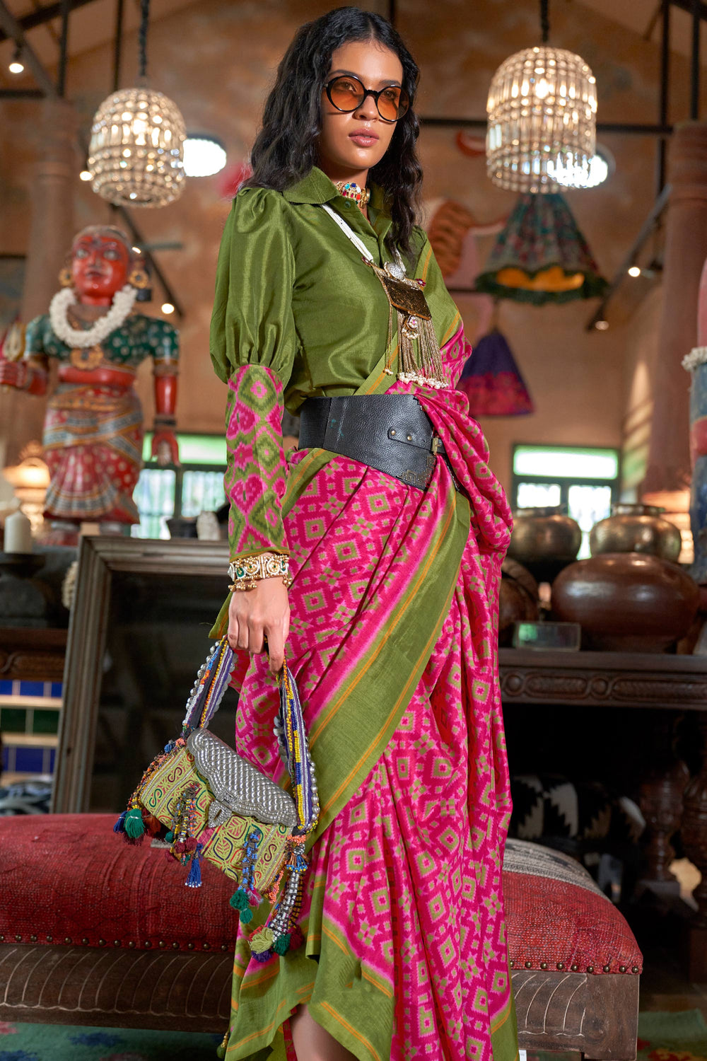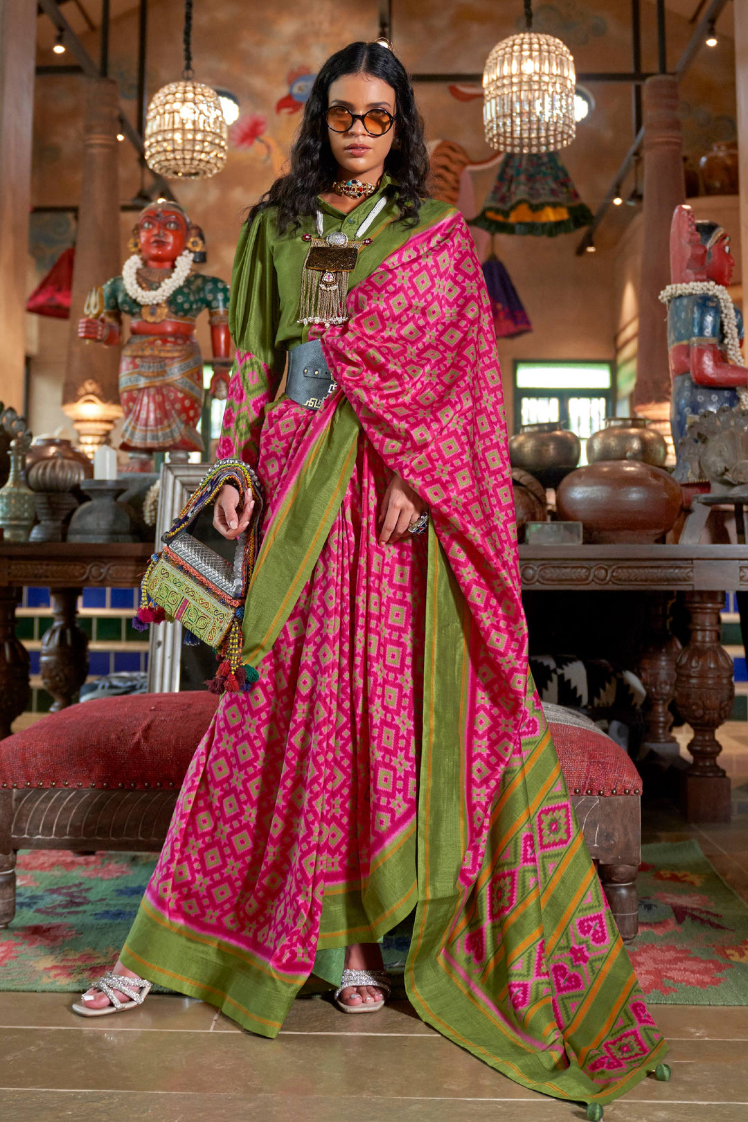 Exclusive Patola Printed Green Color Saree In Art Silk Fabric