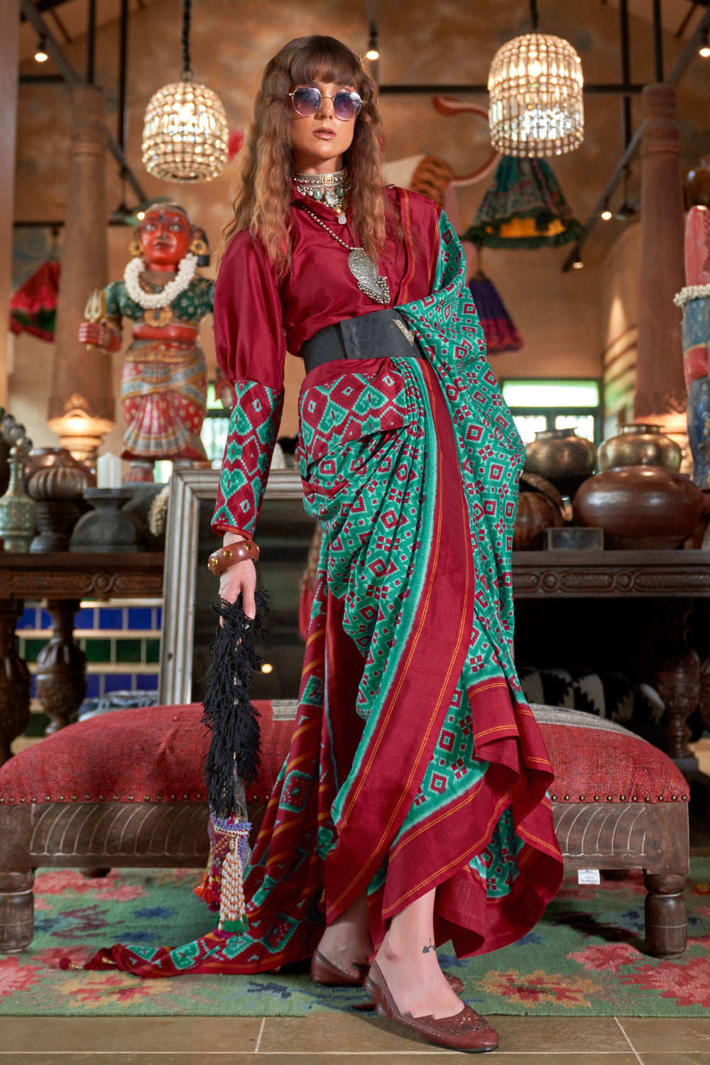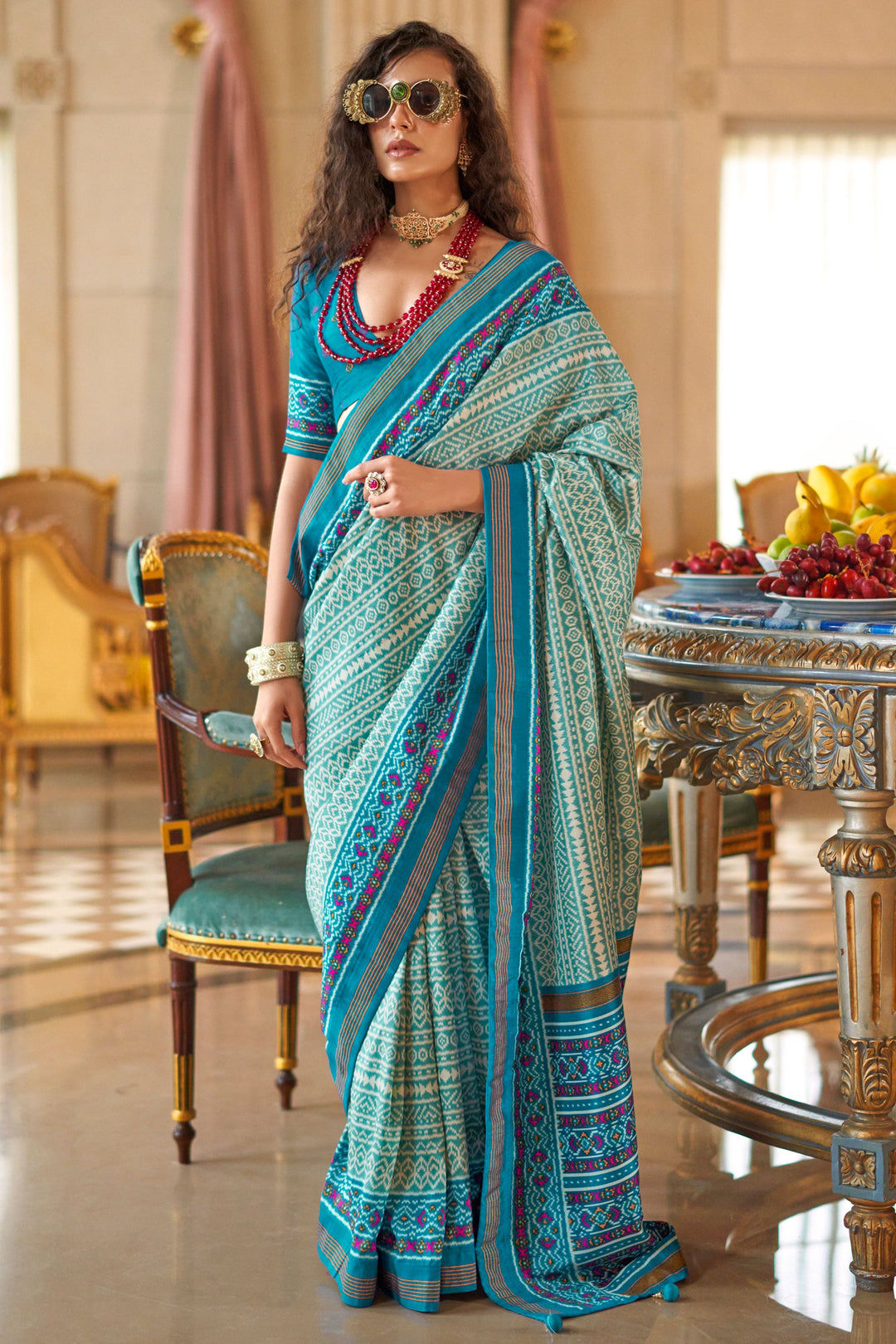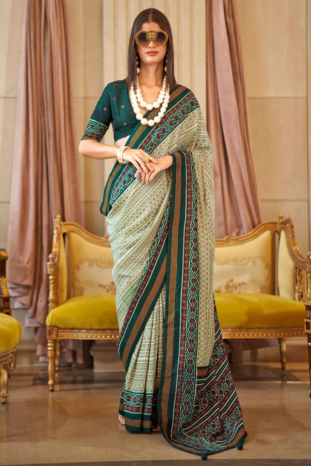 Sea Green Color Exquisite Patola Printed Saree In Art Silk Fabric