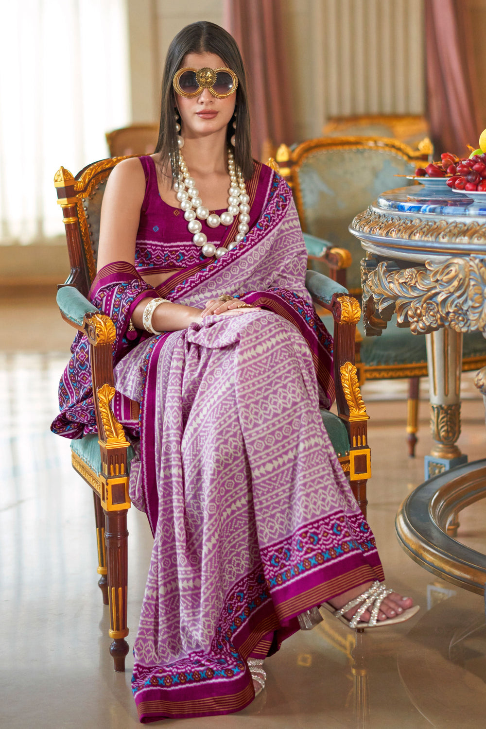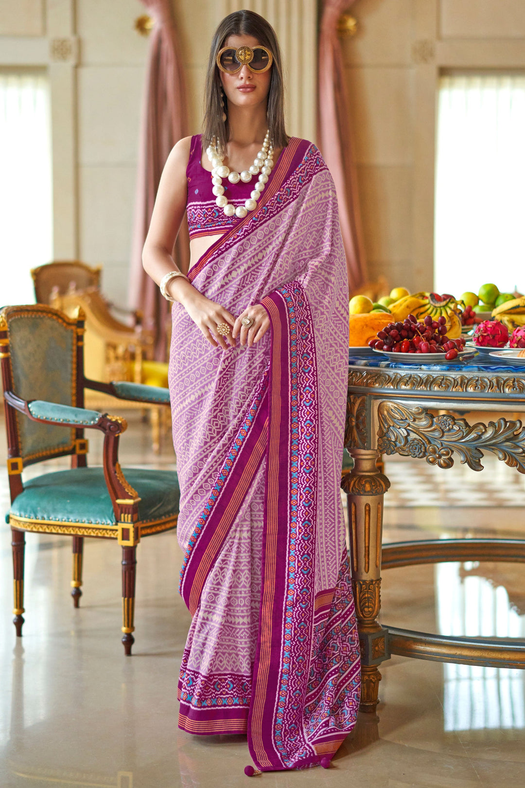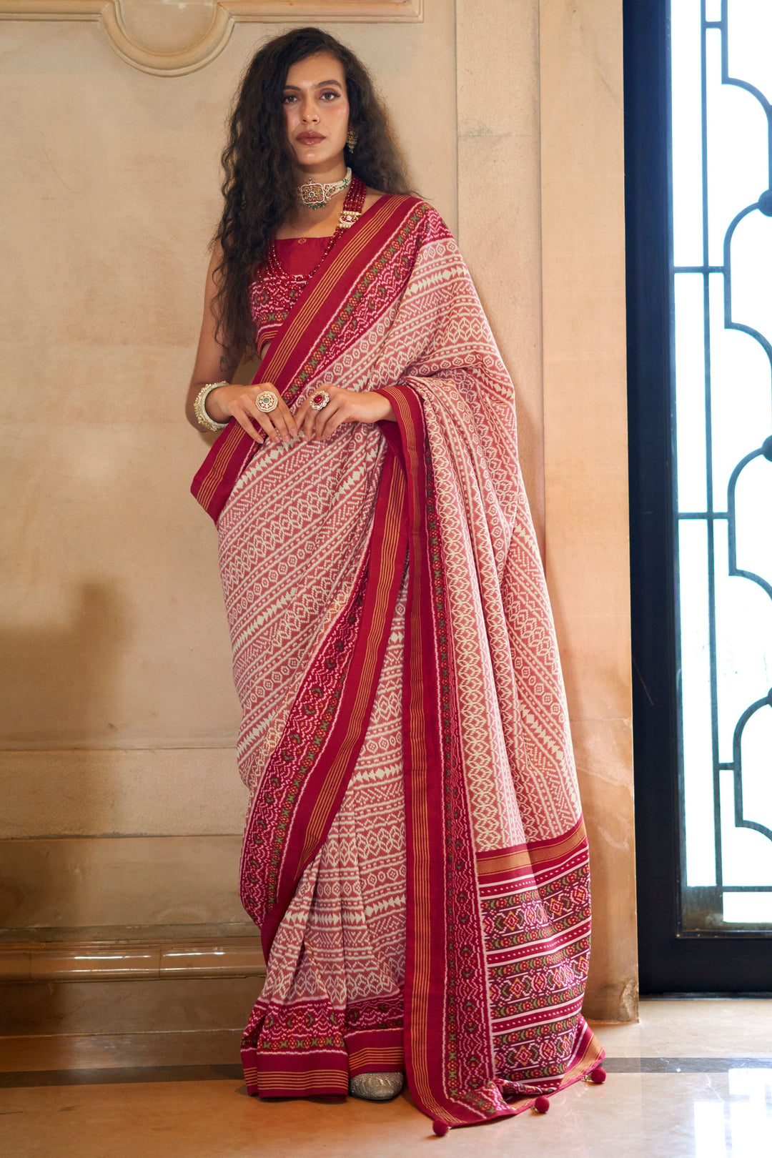 Attrective Art Silk Fabric Rani Color Patola Printed Saree