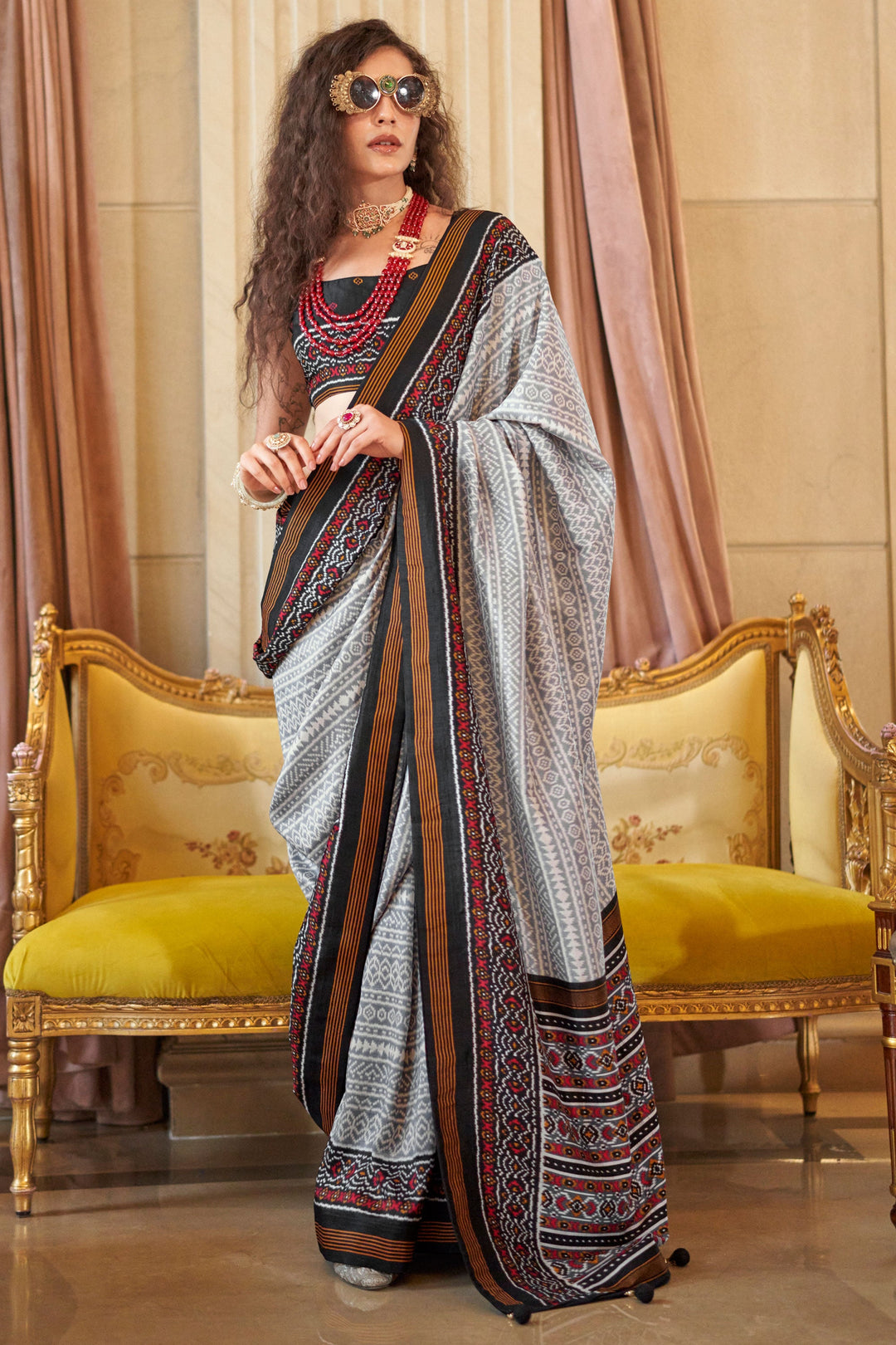 Excellent Festive Wear Tissue Silk Fabric Grey Color Saree